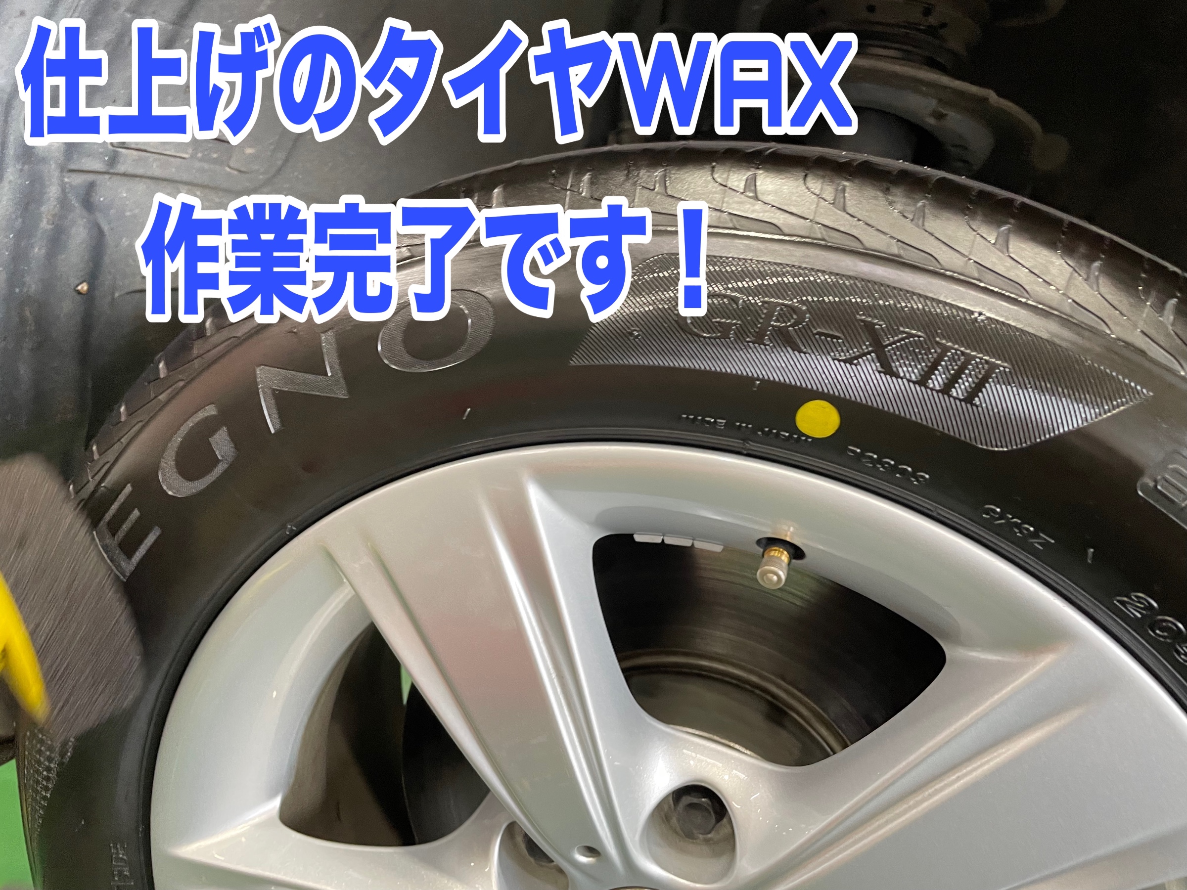 仕上げのタイヤWAXを綺麗に塗り、作業完了です!