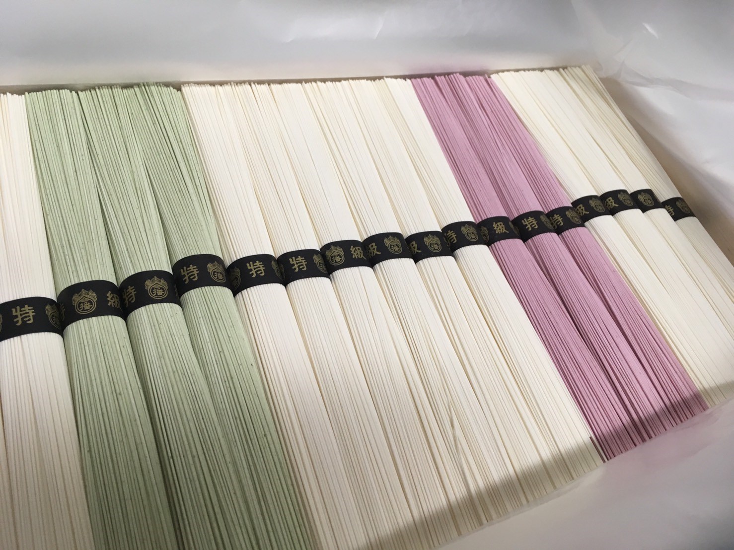 先日、頂いたそうめんを開けたらピンクとミドリが入ってて、子供達は大喜びでした♪