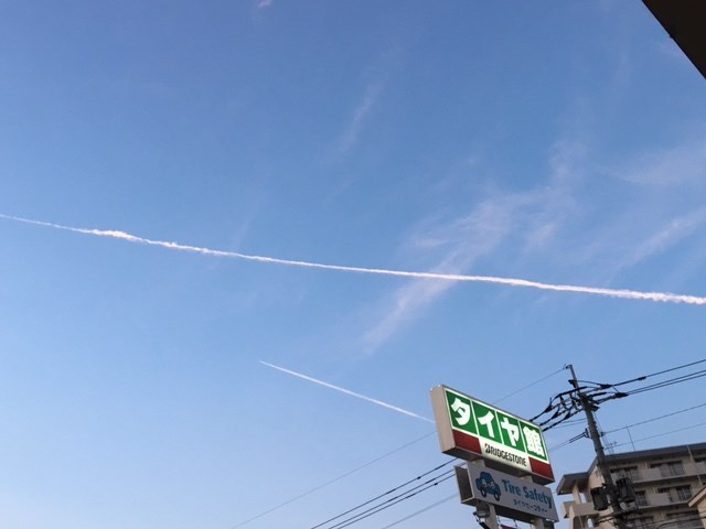最近、よく飛行機雲をみます。