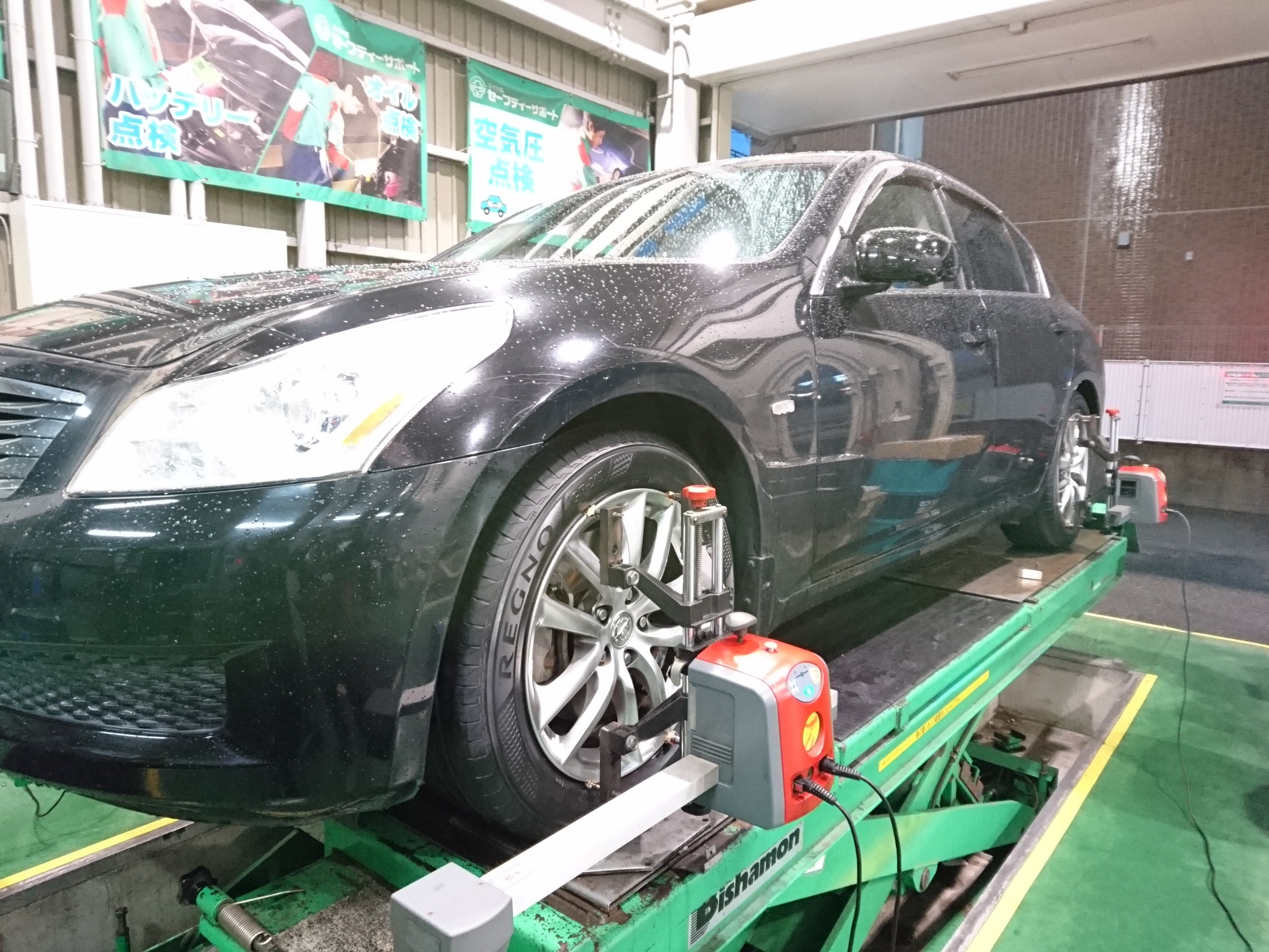 日産 スカイライン V36 タイヤ交換 アライメント