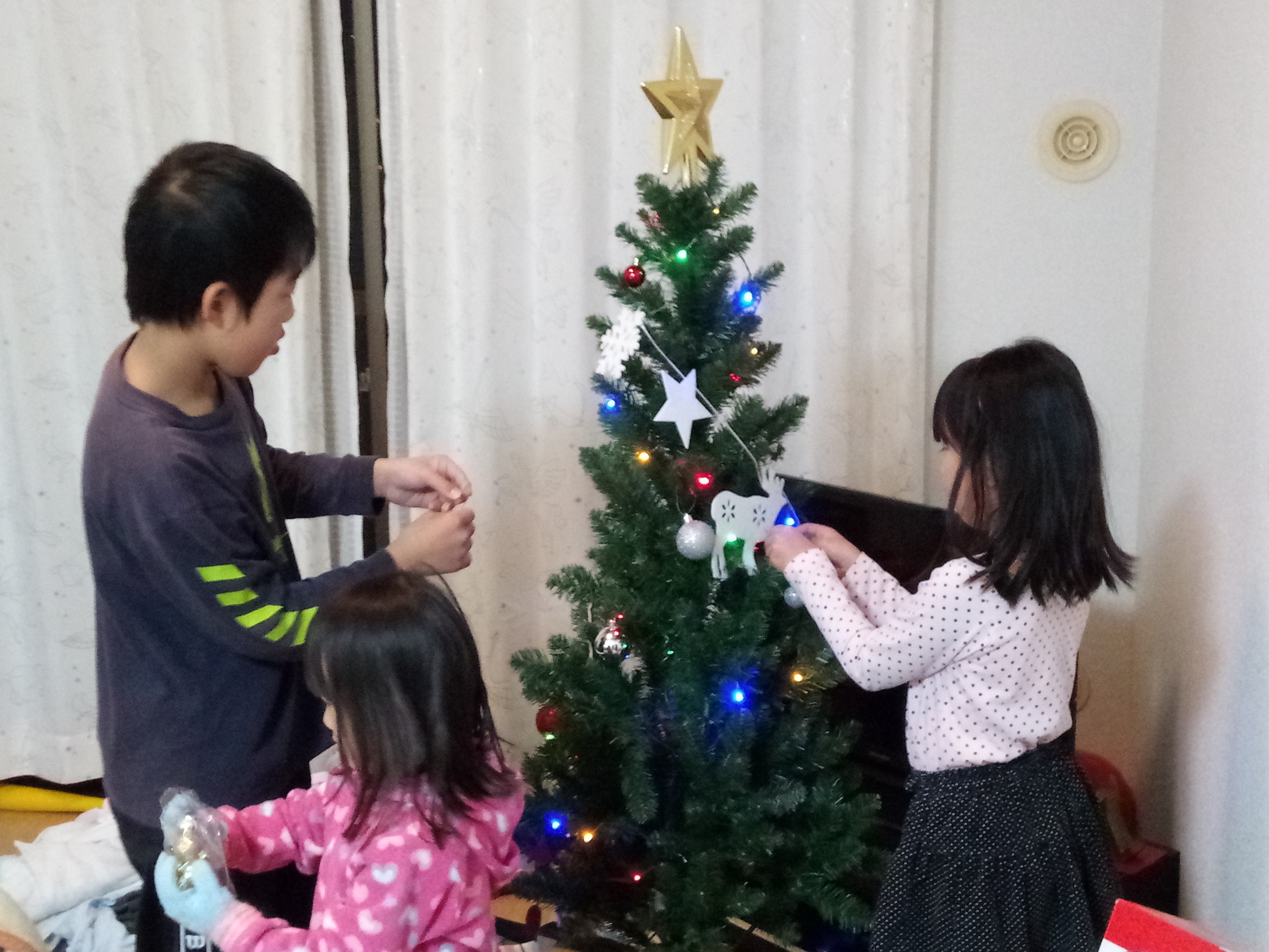 娘たちからすると、自分の背丈よりも大きなツリーなので、大喜びの大はしゃぎでした。