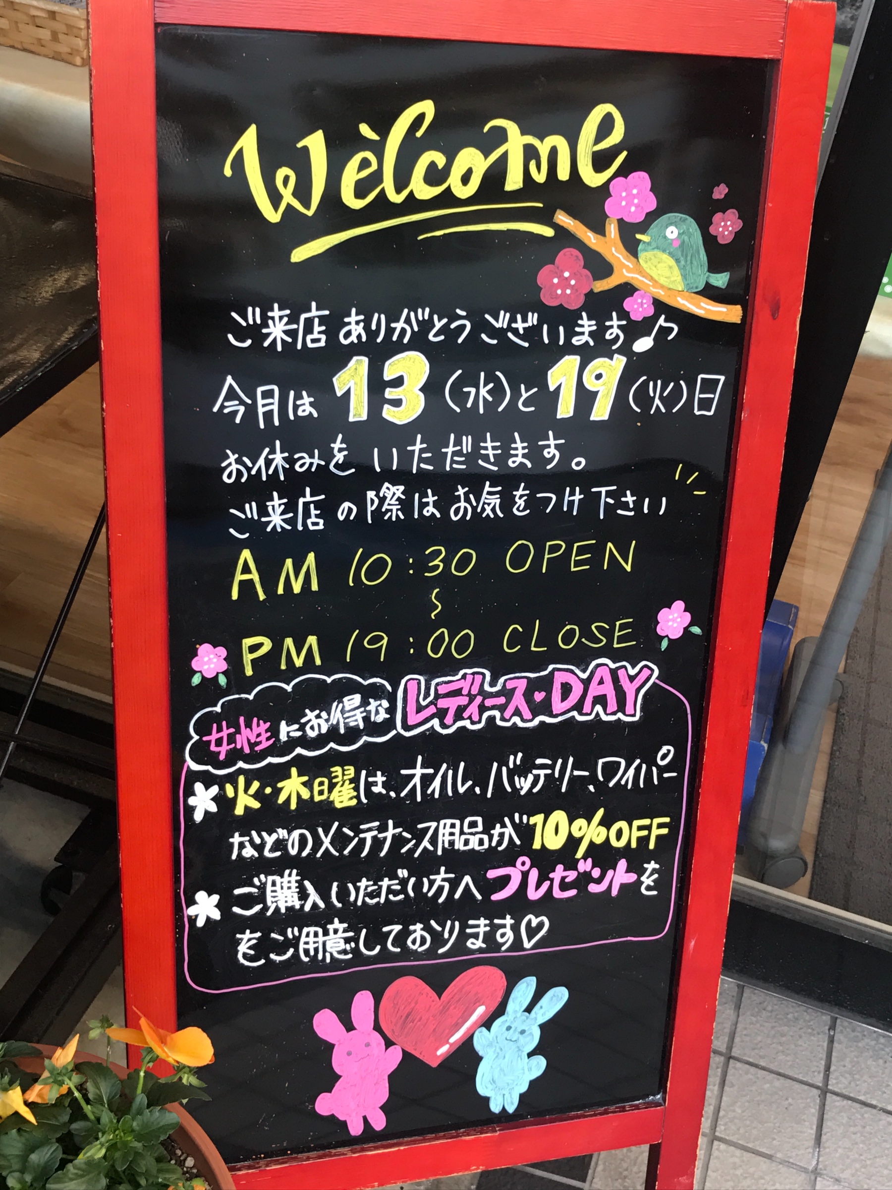 今月もよろしくお願いします ポスト 2019年2月4日 みなさまこんにちは! 寒かったり暑かったりを繰り返してて、季節感が全くつかめない2月のこの頃。。。 本日も元気にタイヤ館春日店は営業しております⸜( ˙▿˙ )⸝ 今月は13日と19日を店休日としていただいております。 19日は社内での研修を予定しておりますので全国的にタイヤ館は店休となります。ご迷惑をおかけしますが何卒よろしくお願いします! 担当:しらくら
