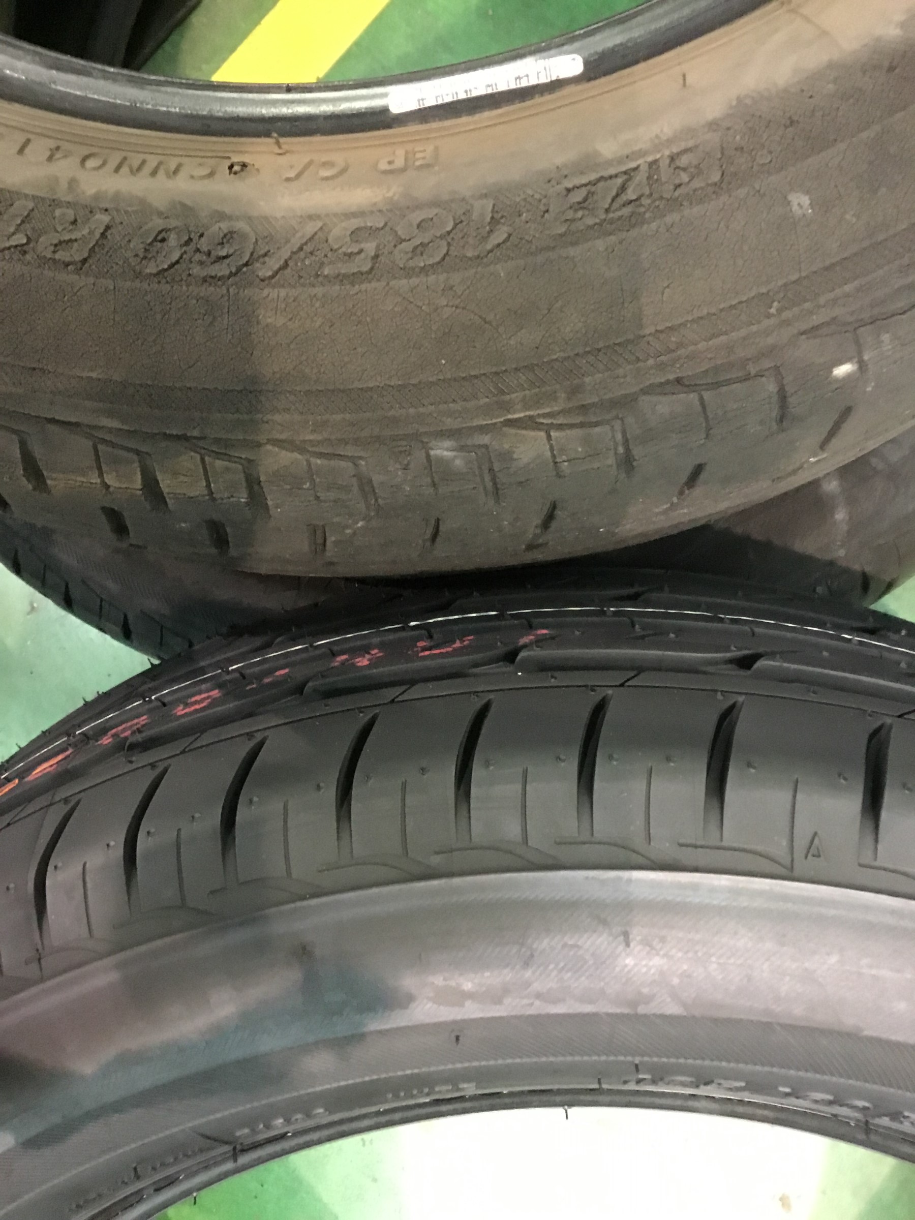 この写真は交換したタイヤと新品タイヤです(^^♪
