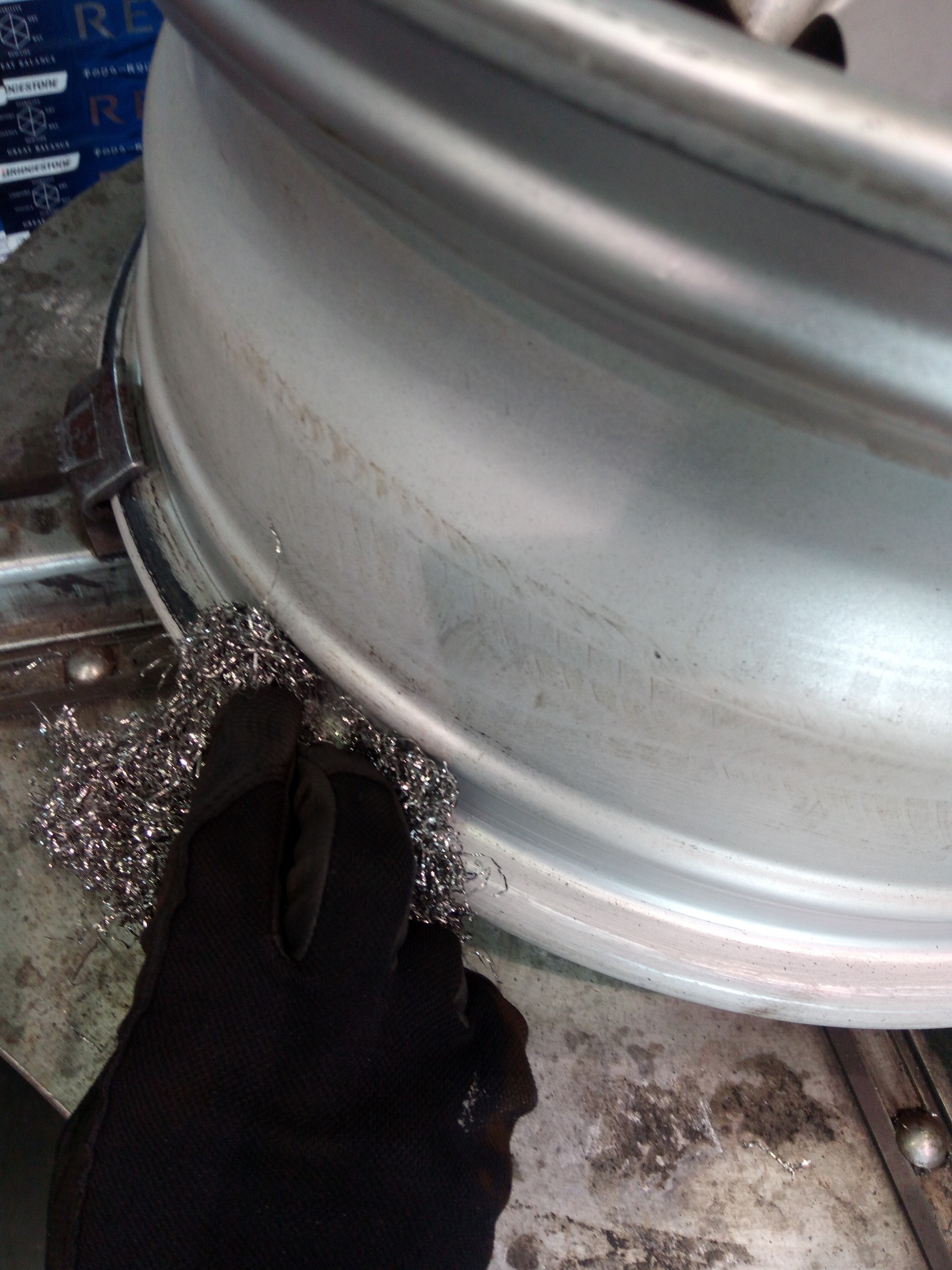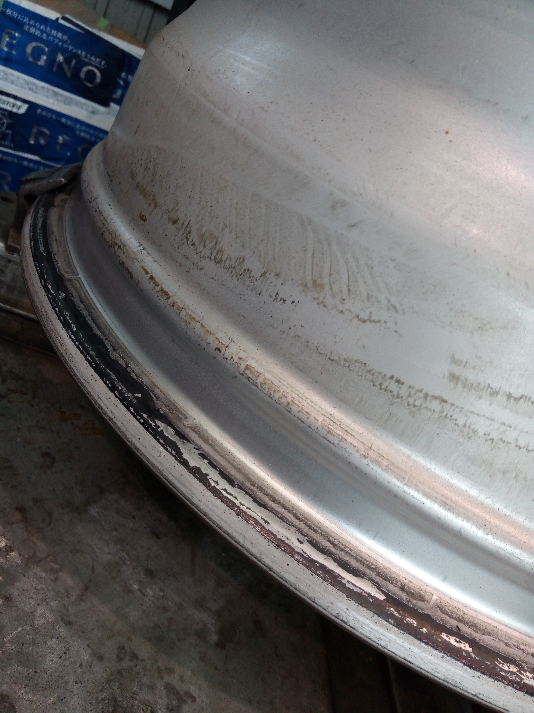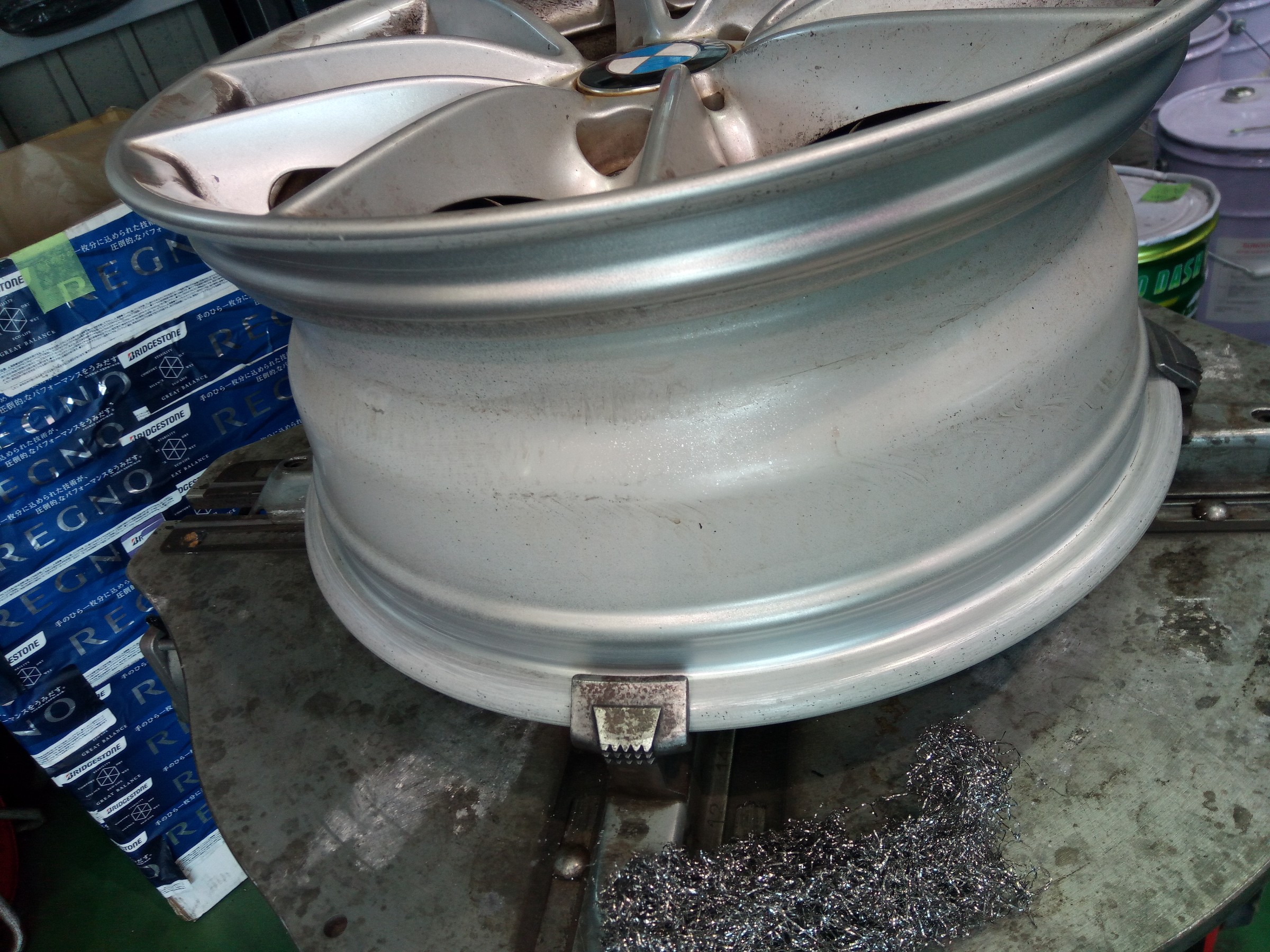 磨いてから新品タイヤを組みます〜(^o^)