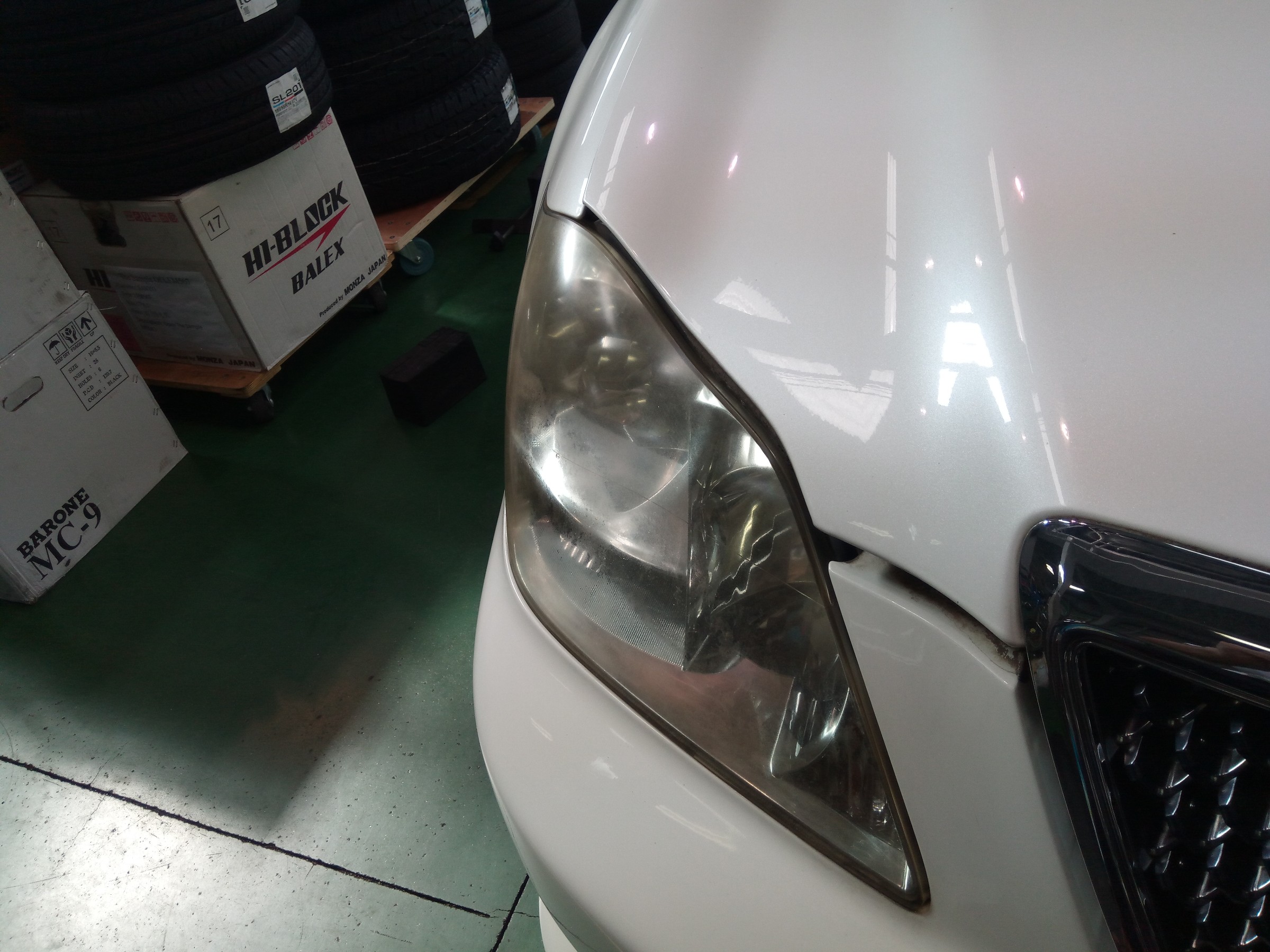 左ヘッドライトは磨き施工後!!!