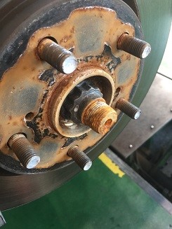 錆でハブとホイールのセンターボアがひっついてしまってました。。