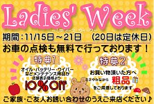 みなさんこんにちは~(*´ω`*)/ 福岡県 春日市 若葉台東 にあるタイヤ館春日の谷口です♪ いつも タイヤ館春日 のHPご覧いただき 誠にありがとうございます(●´ω`●) 今月は女性の方限定の レディースWEEK となっております(´艸`*)♪ ☆★期間は15日~21日です☆★ (※20日水曜日は定休日です) 期間中はオ...
