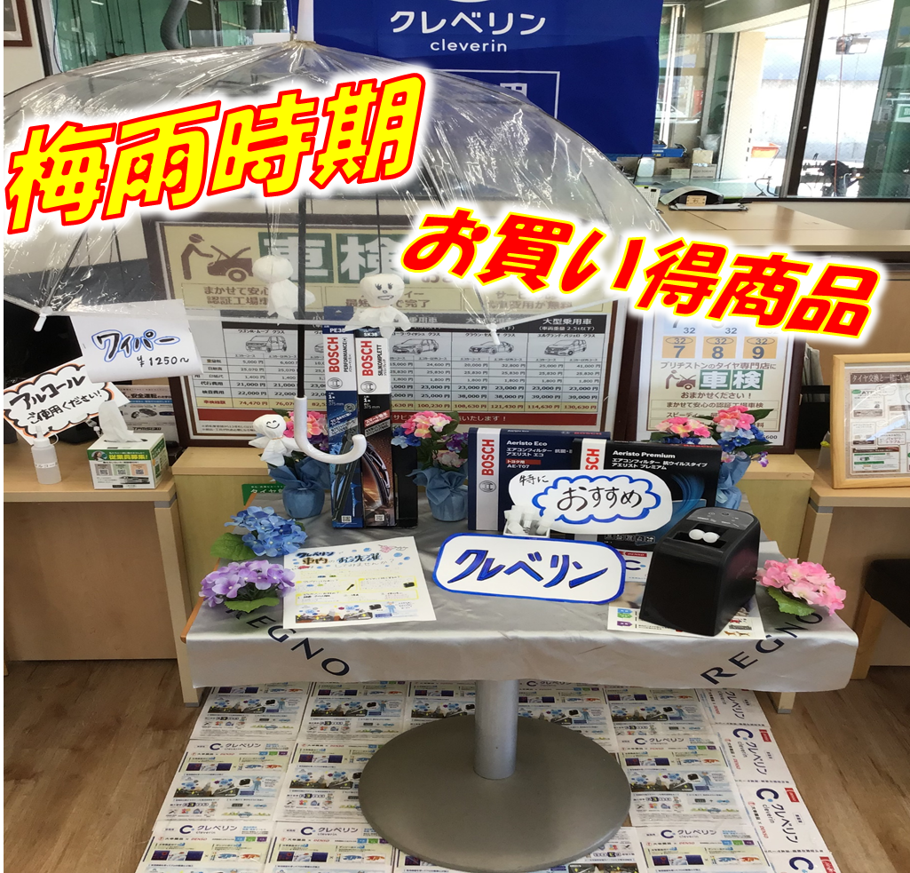 当店では、梅雨時期に向けたオススメ商品をたくさん展示しております。