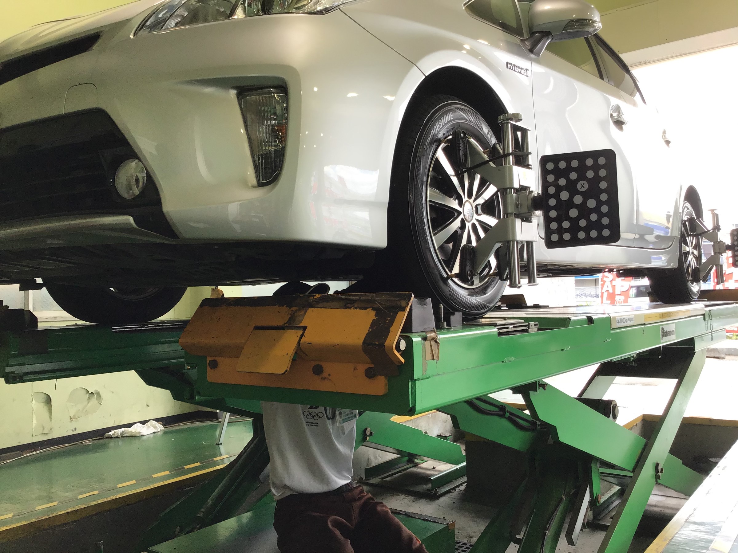 タイヤ交換が終了後アライメント作業へ移っていきます。