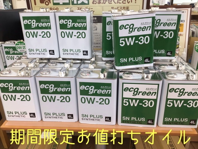こちらのホームページから見られるWEBチラシにも載っていますが、限定10台のお値打ちオイル【エコグリーン 0W-20:5w-30】 まだございます。