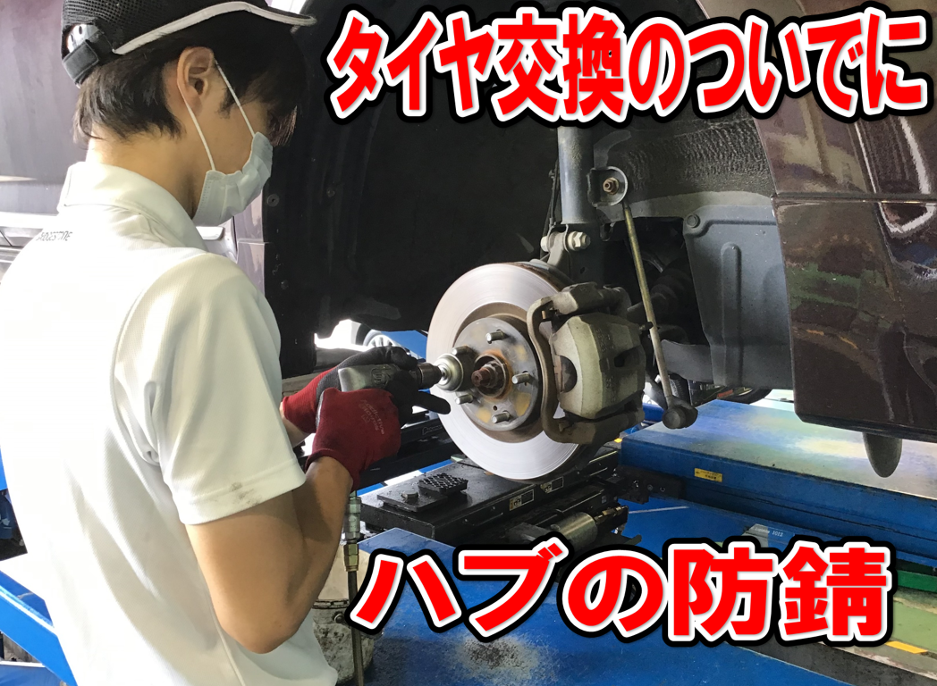 タイヤ交換時に作業させて頂く機会が多いハブの錆止めの作業のご紹介です。