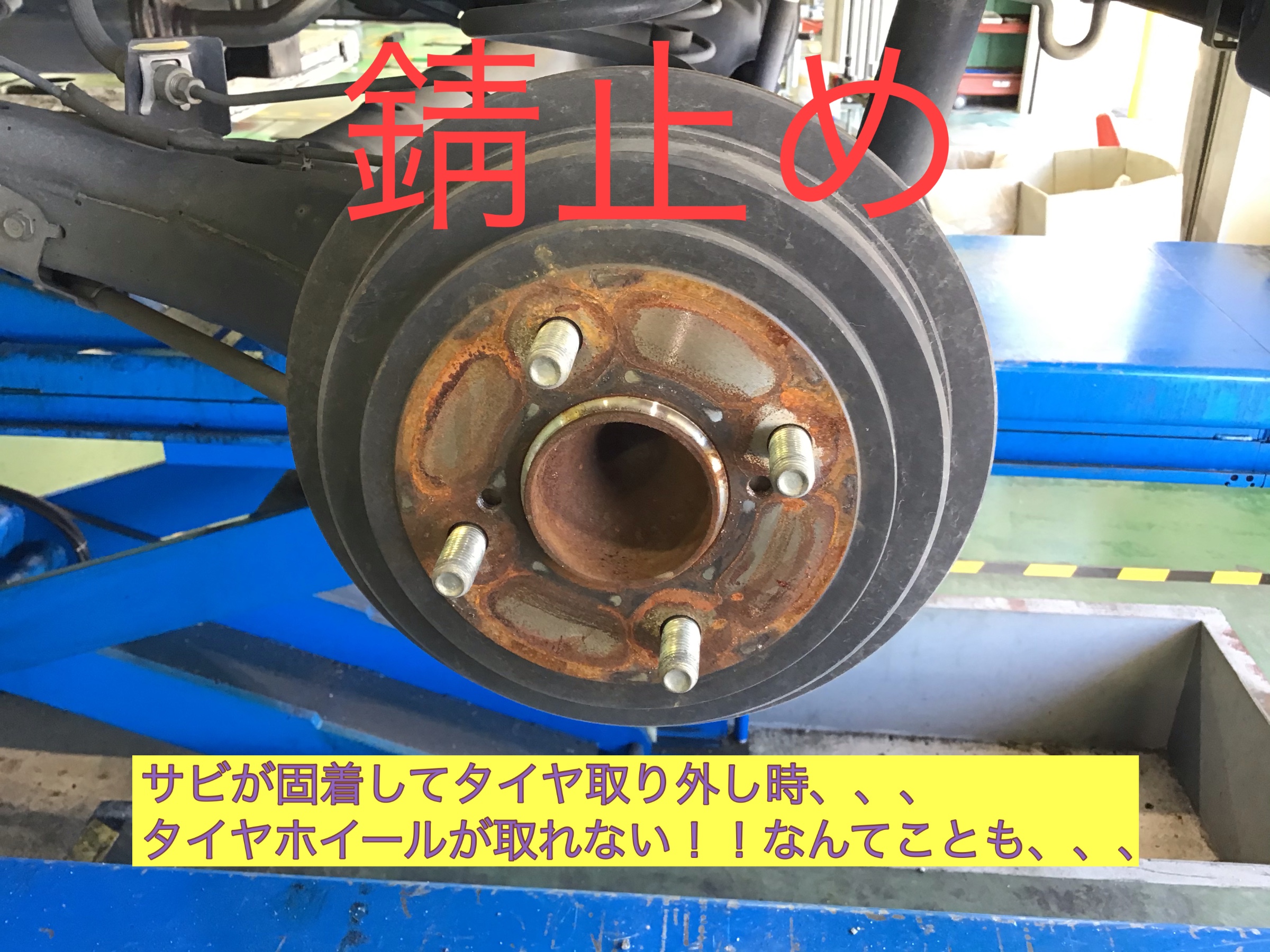 錆止めをしながら、タイヤ交換の作業を行った為、