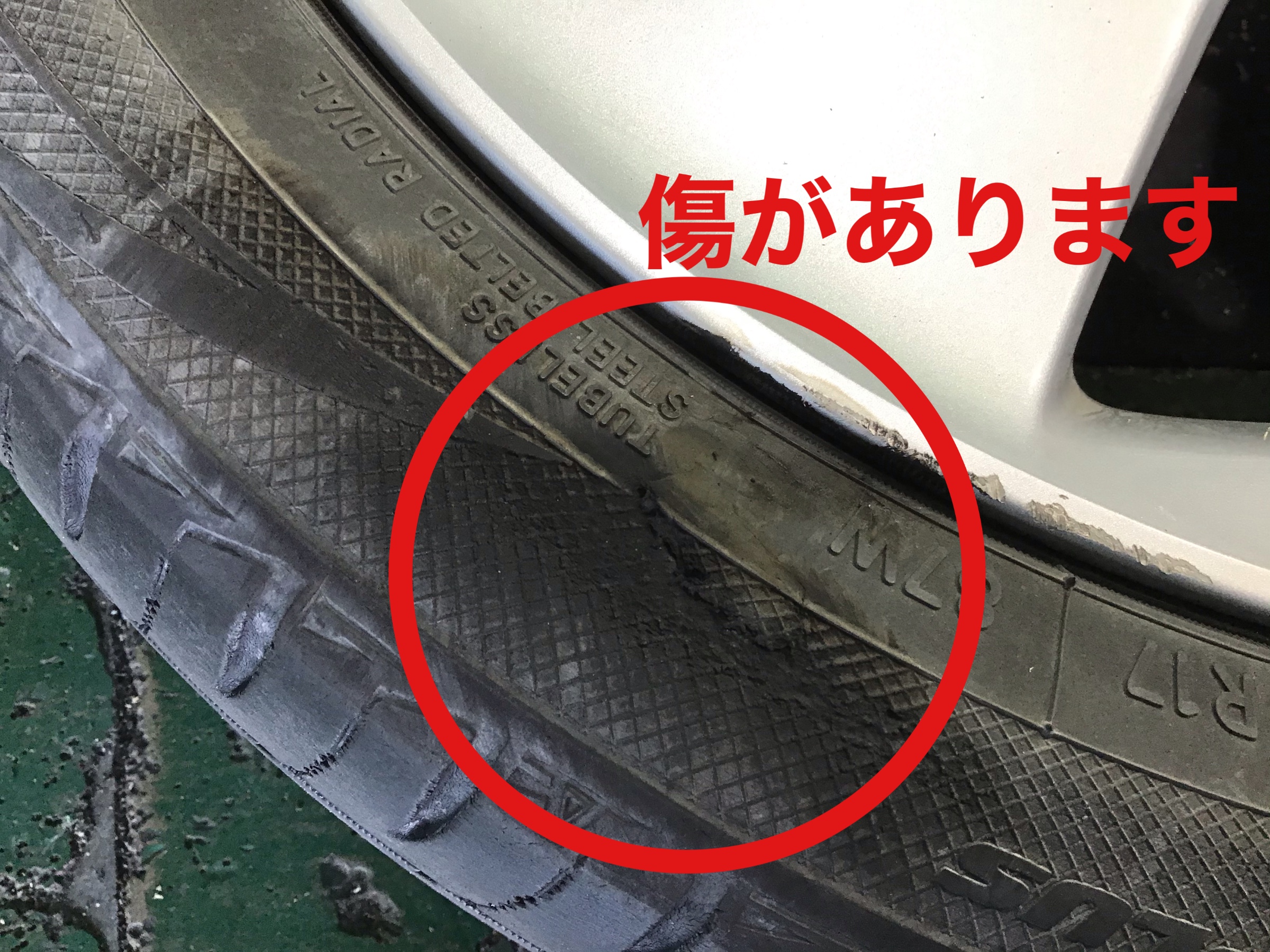 今回、タイヤのサイドに傷がついてしまい