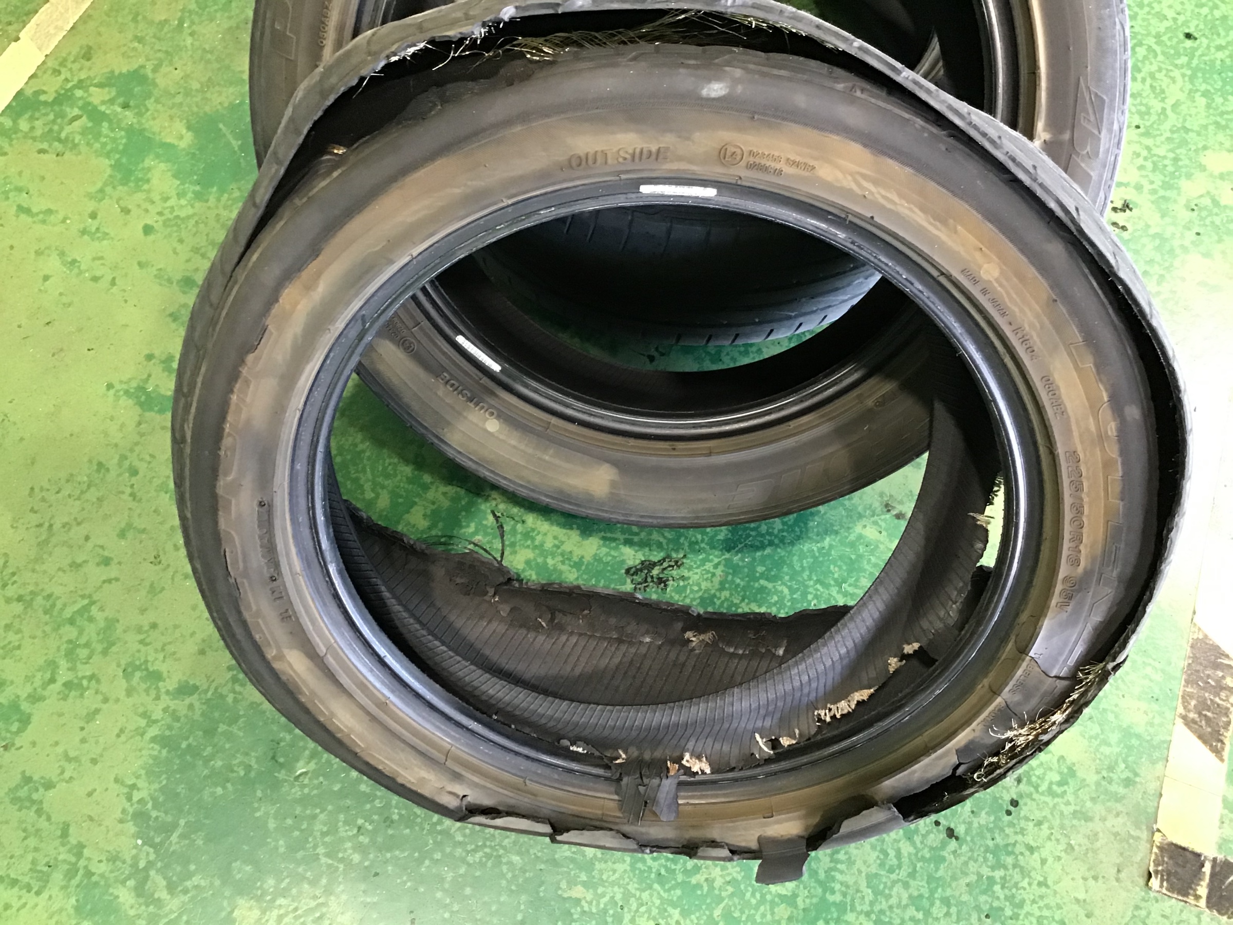 高速道路走行中にパンクをしてしまったとの事でレッカー車でご来店頂きました。