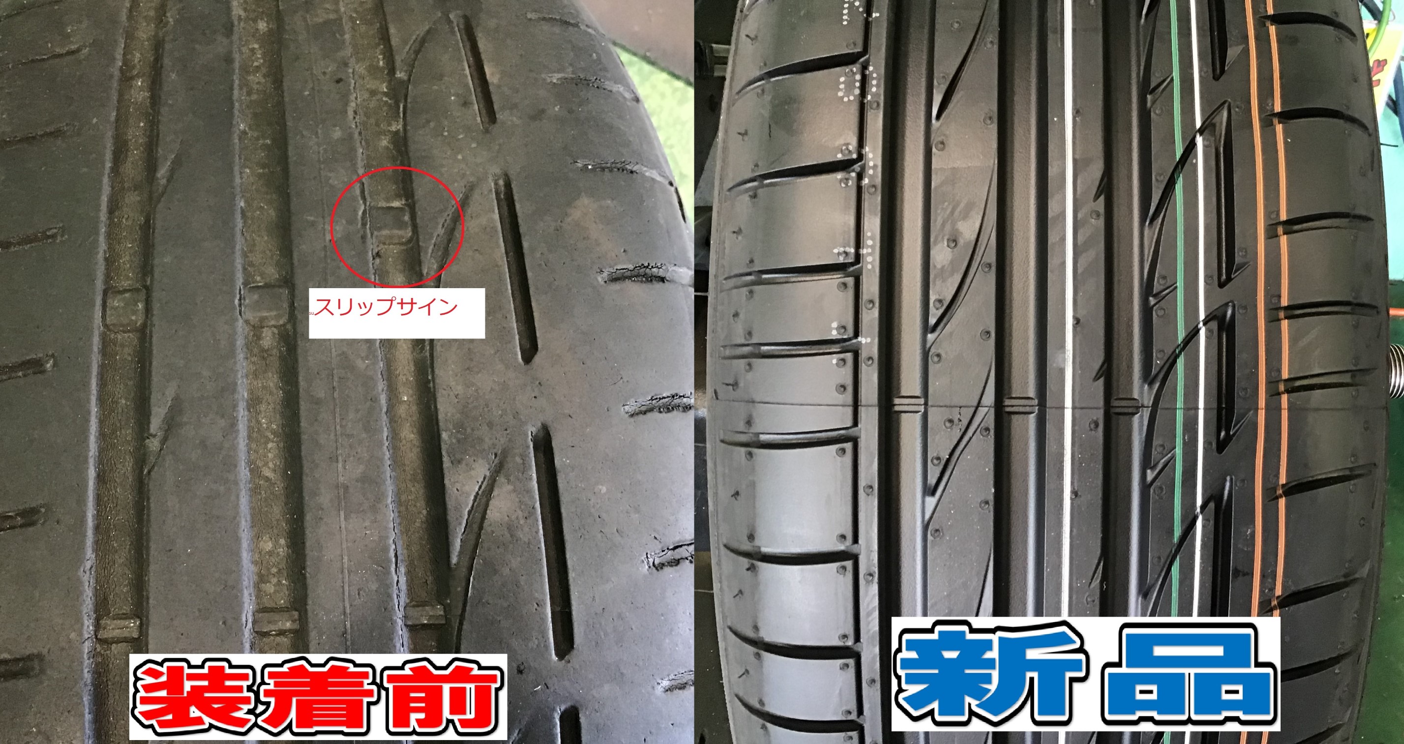 6年ほど使用されており、スリップサイン(使用限度)が見えています。