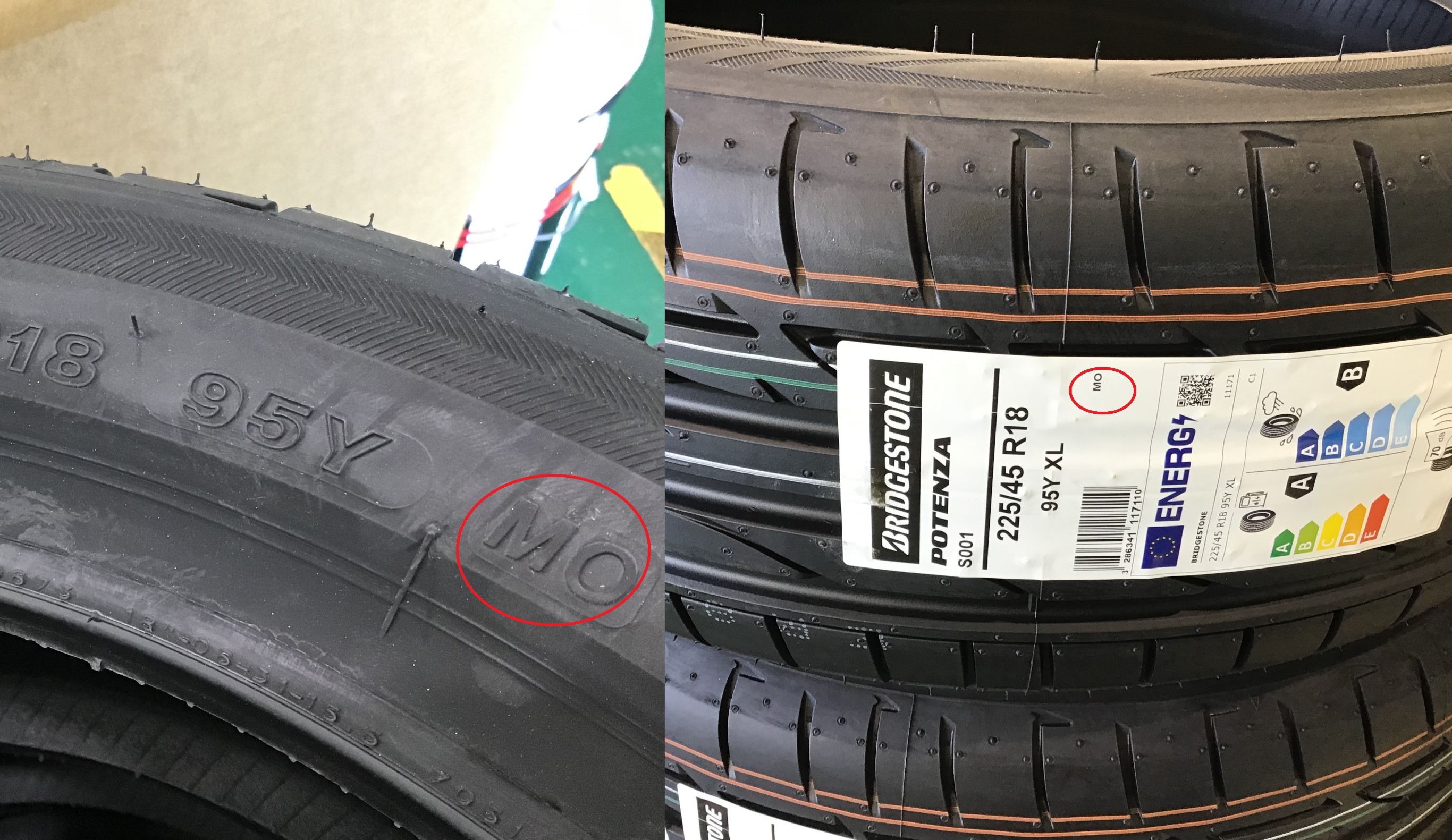 元々新車から装着されたタイヤはブリヂストンS001(MO)→メルセデス承認タイヤ