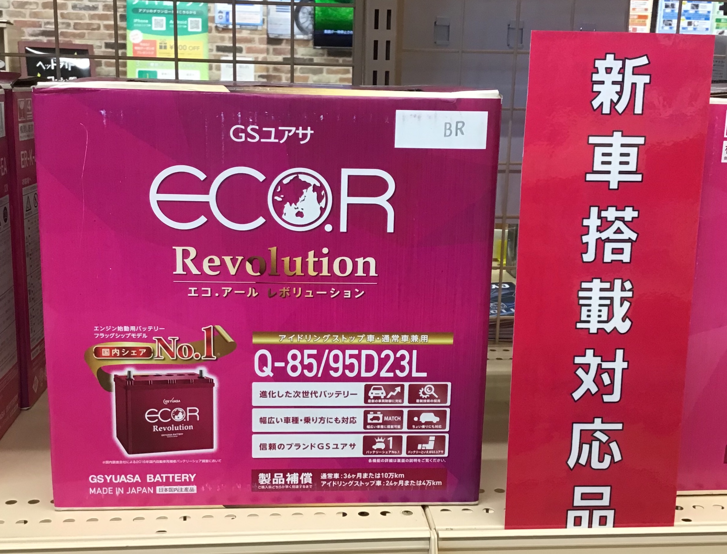 バッテリーはこちらのお車はアイドリングストップ車となるので、GSユアサ ECO.R レボリューション Q-85のアイドリングストップ車専用バッテリーを交換致しました。