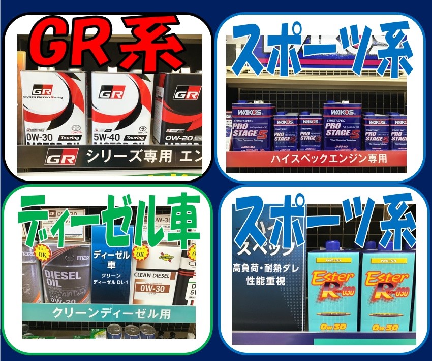 純正オイルからGR系や輸入車向けなど選ぶ事が出来るタイヤ館です。