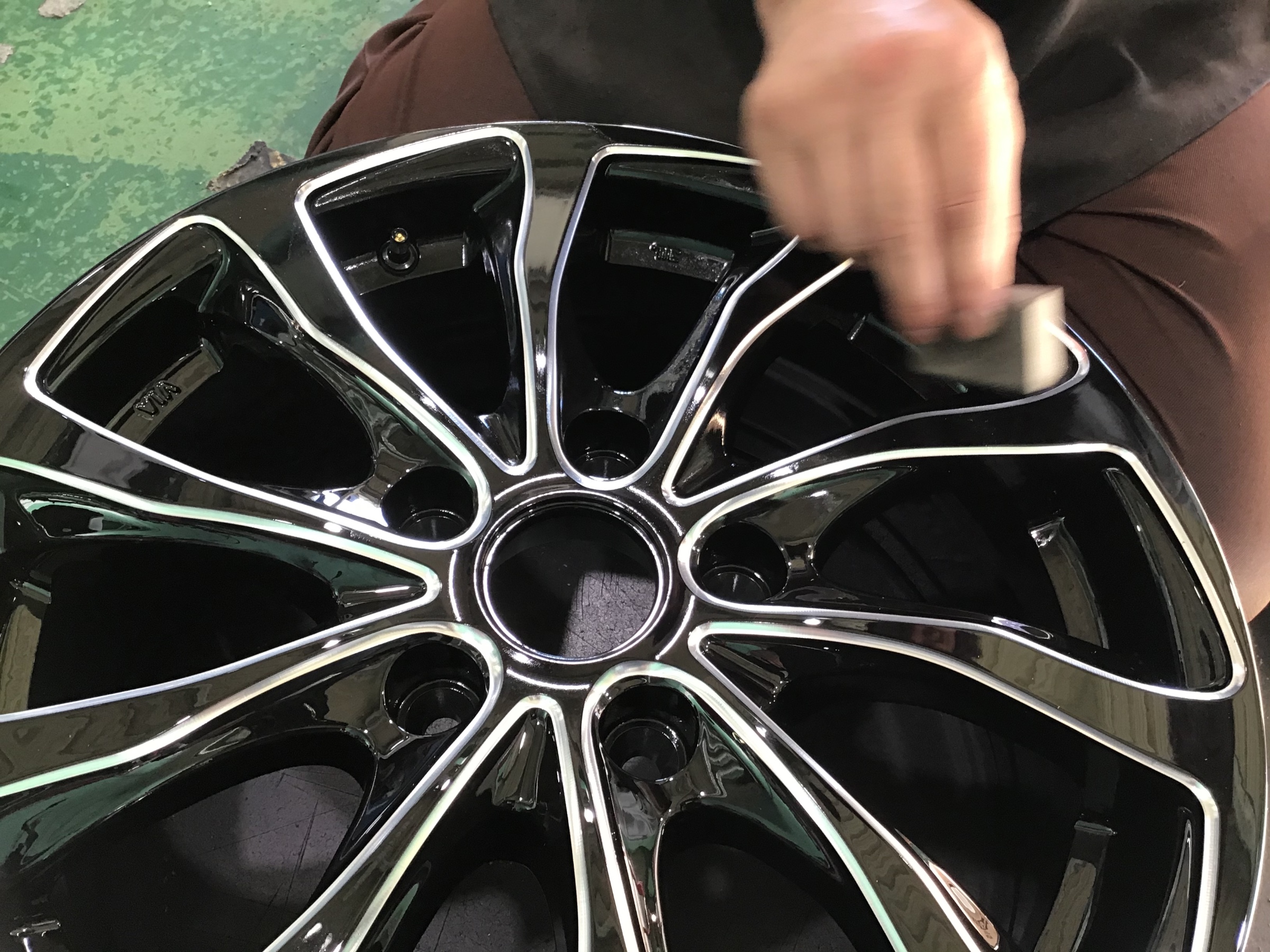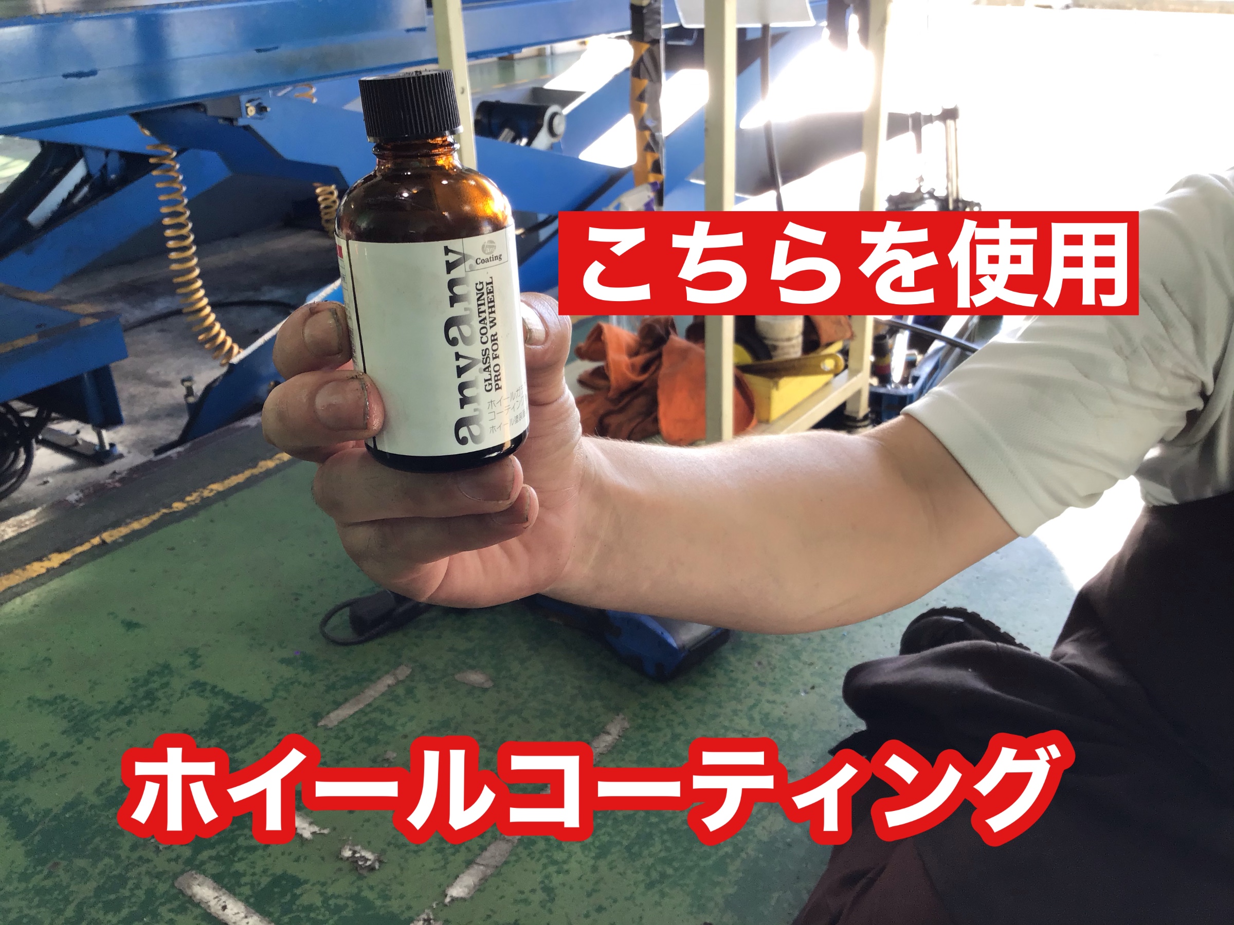 ホイールコーティング剤を添付して乾かしていきます。