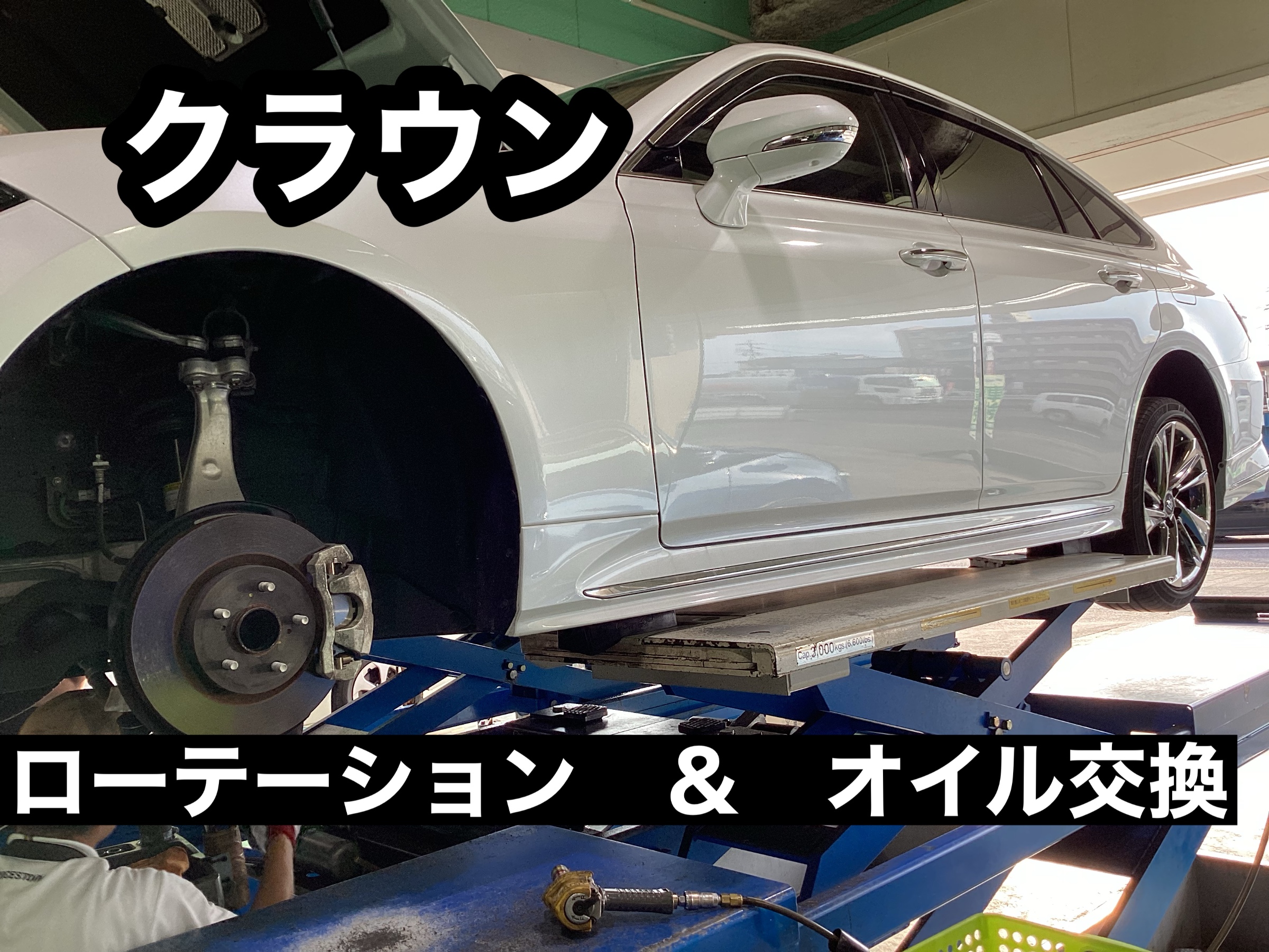 本日の作業はクラウンのエンジンオイル交換とローテションです。