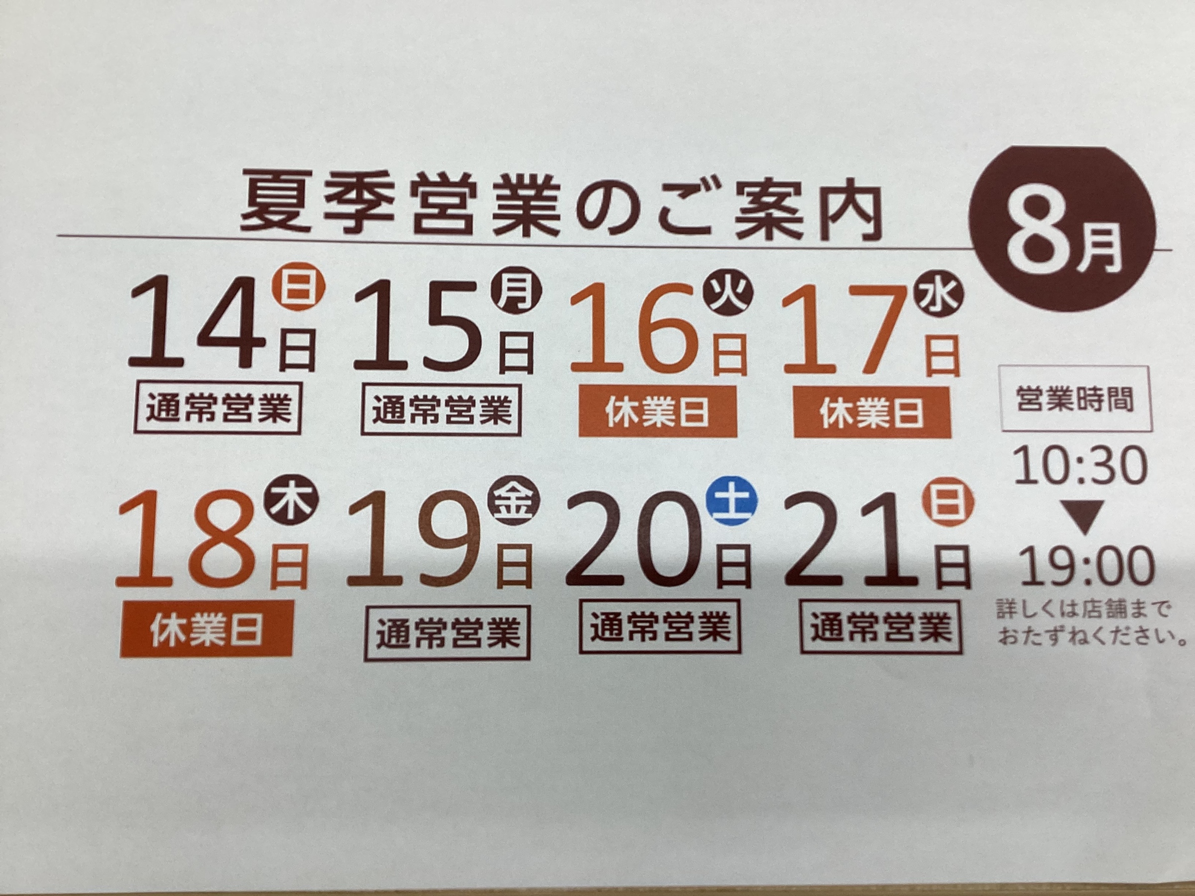 8/18(木)はタイヤ館辻本通店は営業しております。