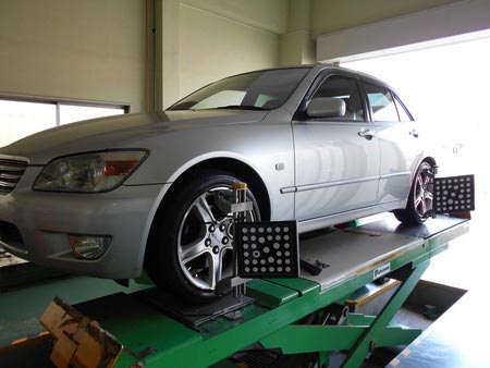 自動車メーカーが個々設定している車軸の「角度」を調整する作業ですが