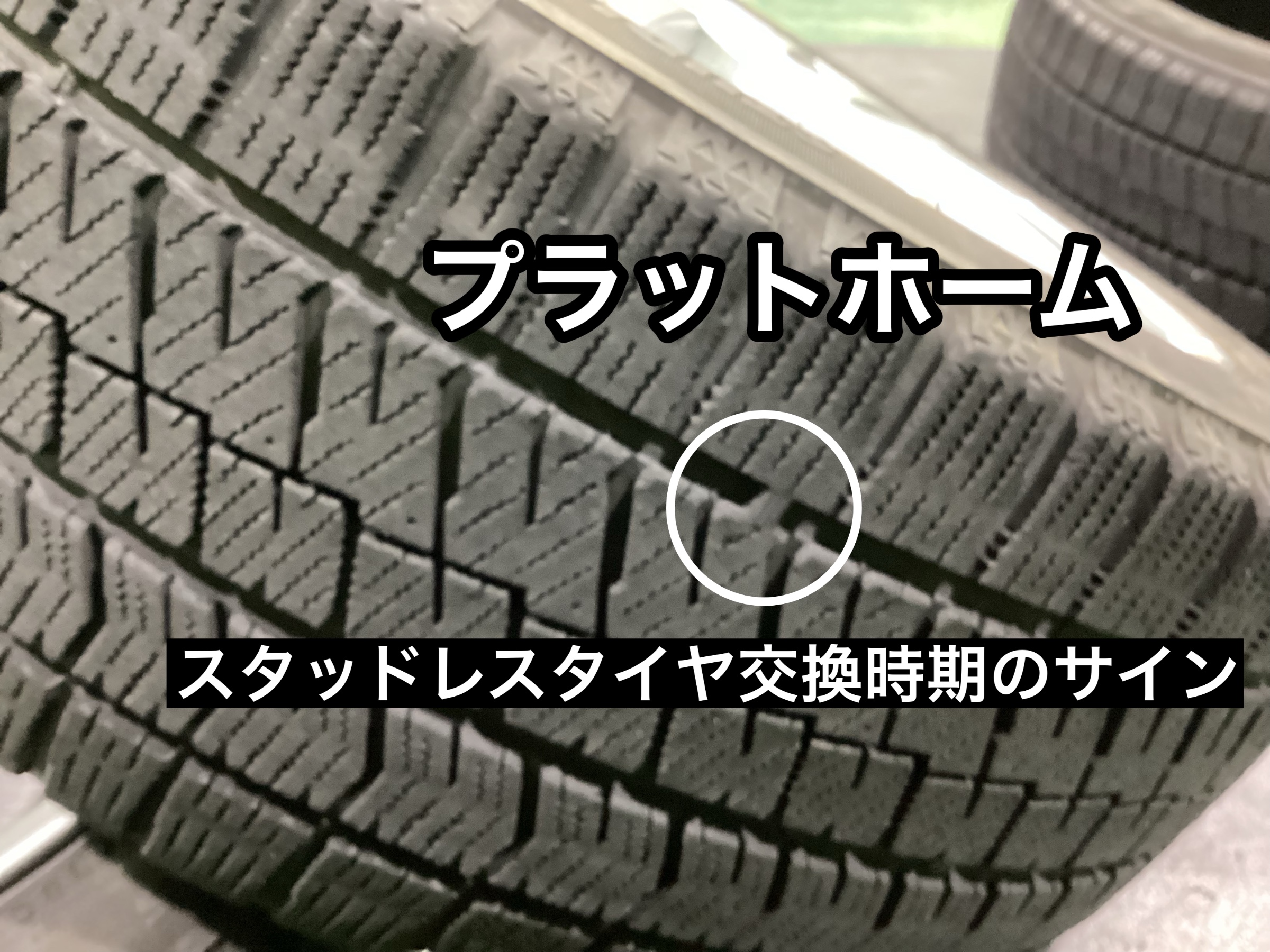 今まで使用されていたスタッドレスは使用限度のサインが露出していました。