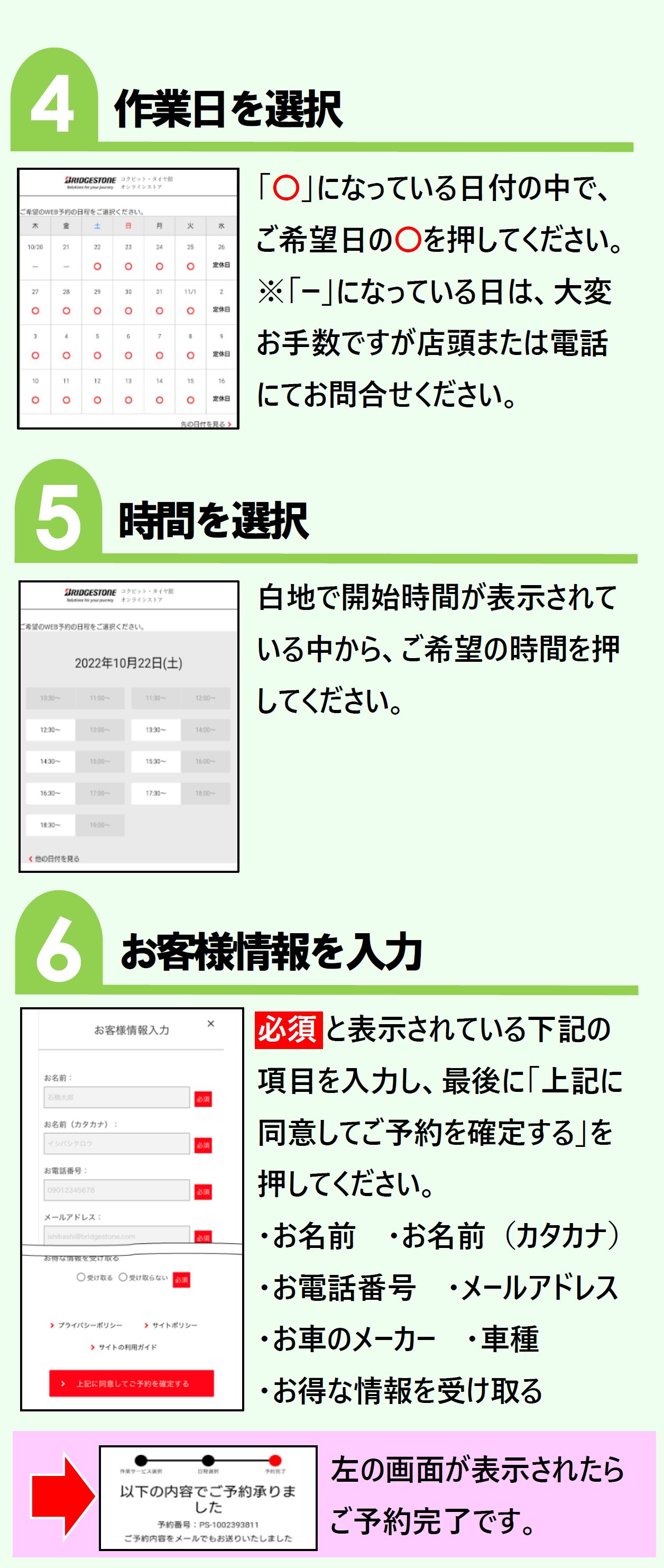 タイヤ点検・安全点検/タイヤ履き替え/オイル交換/その他ピット作業の予約