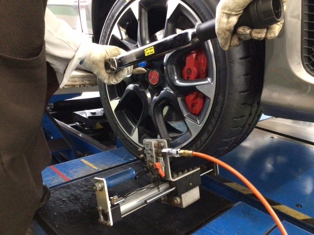 アバルト595 コンペティツィオーネ タイヤ交換作業 です。