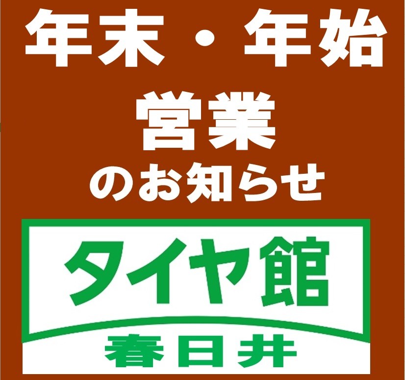 年末・年始の営業のお知らせ ポスト 2022年12月26日 春日井市国道19号線沿いにあるタイヤ館春日井店です。 年末年始のお休みは下記の通りとなります。 2022年 12/30(金)・・・ 営業 2022年 12/31(土)・・・お休み 2023年 1/1(日)・・・お休み 2023年 1/2(月)・・・お休み 2023年 1/3(水)・・・お休み 2023年 1/4(木)・・・営業 ご来店時にはご確認の上お気をつけてお越しくださいませ。 カテゴリ:その他商品・サービス