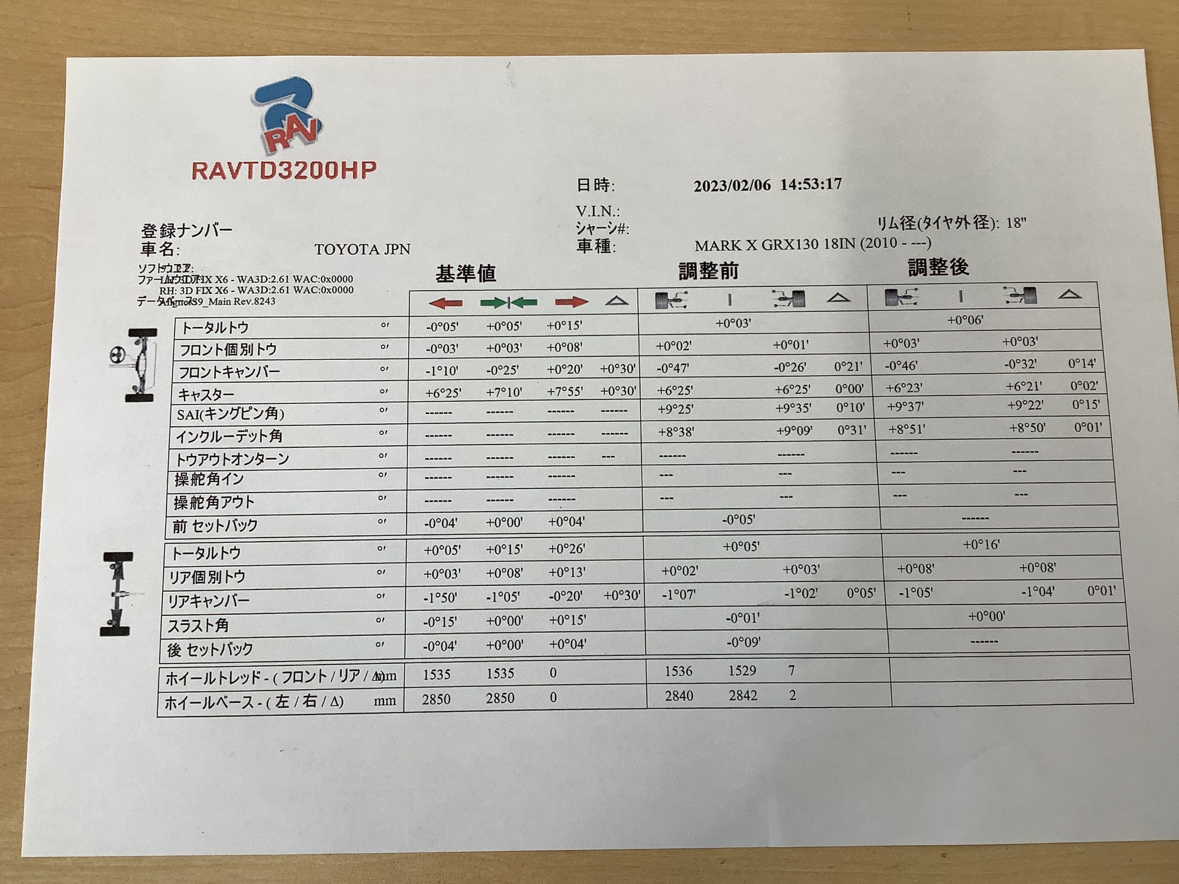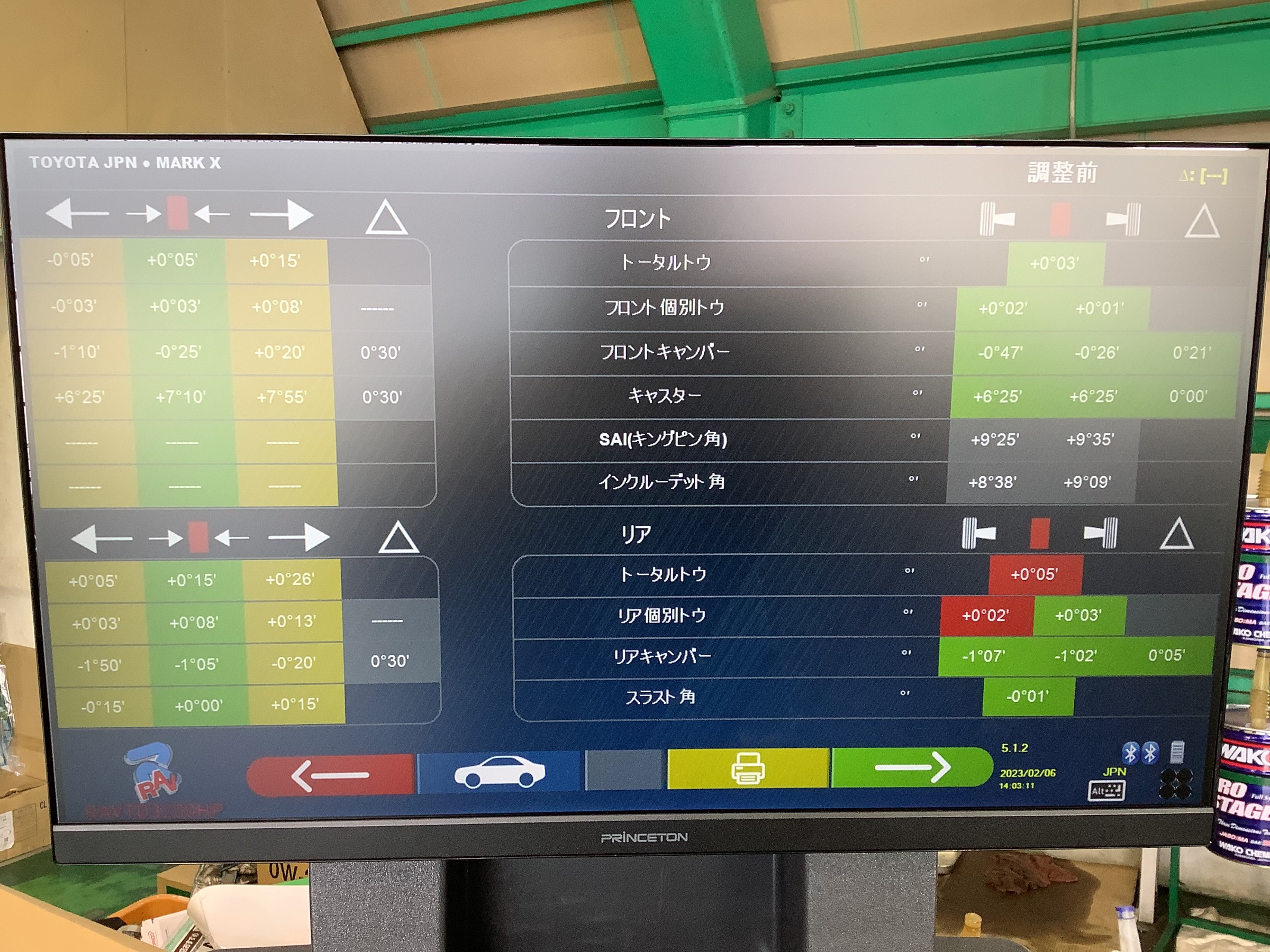 【他店舗作業事例】TOYOTA マークX アライメント調整作業