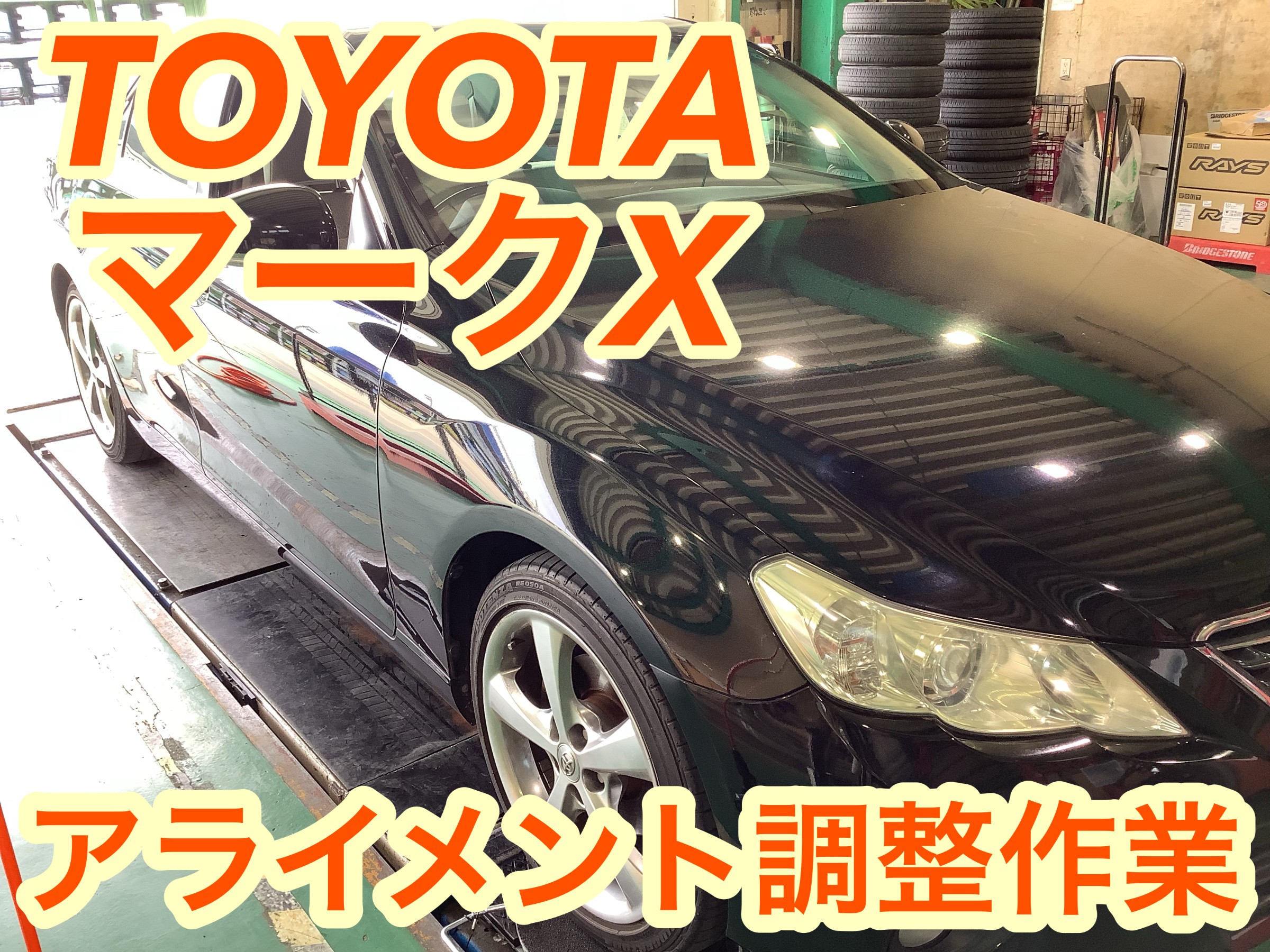 本日は、TOYOTA マークXのアライメント調整作業のご紹介です!(タイヤ館他店舗作業)