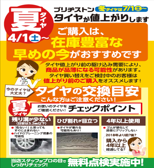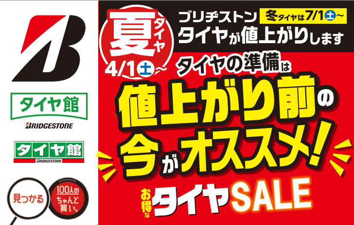 【タイヤの値上げ】タイヤを値上げ前に買うなら今がチャンス!【タイヤの事ならタイヤ館へ!】