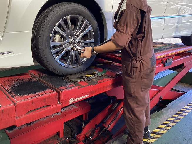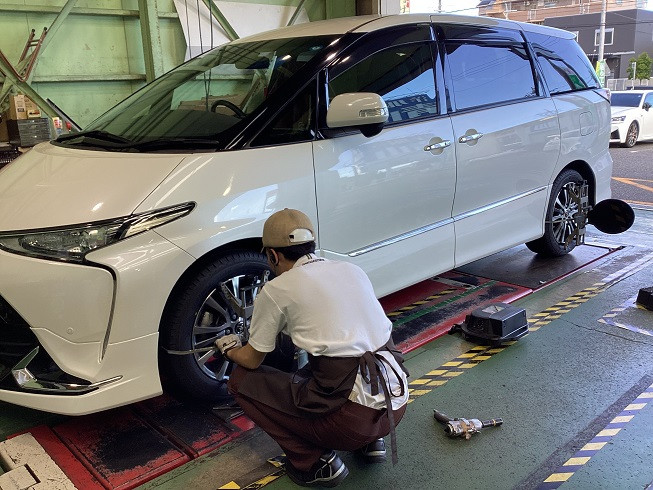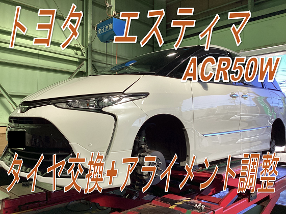 ノーマルタイヤ交換+アライメント作業 トヨタ・エスティマ