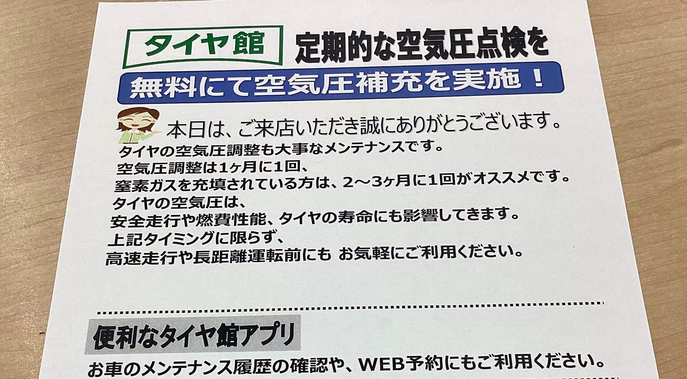 当店ではタイヤの空気圧の点検を定期的に行って頂くことをオススメしております。