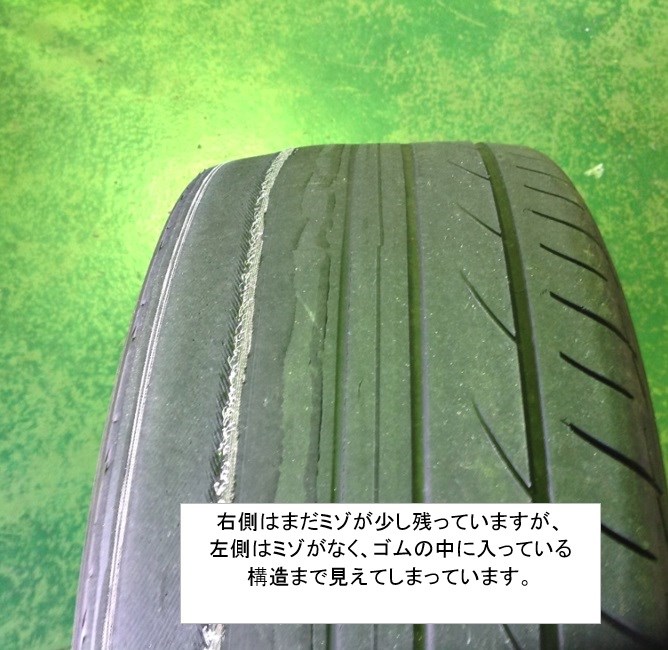 1本のタイヤの左右で差があります。タイヤは使うとすり減っていってしまいます。