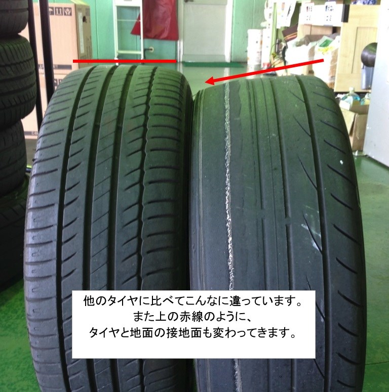 要は、タイヤの取付いている角度、車の骨盤がズレてしまっている状態、です。