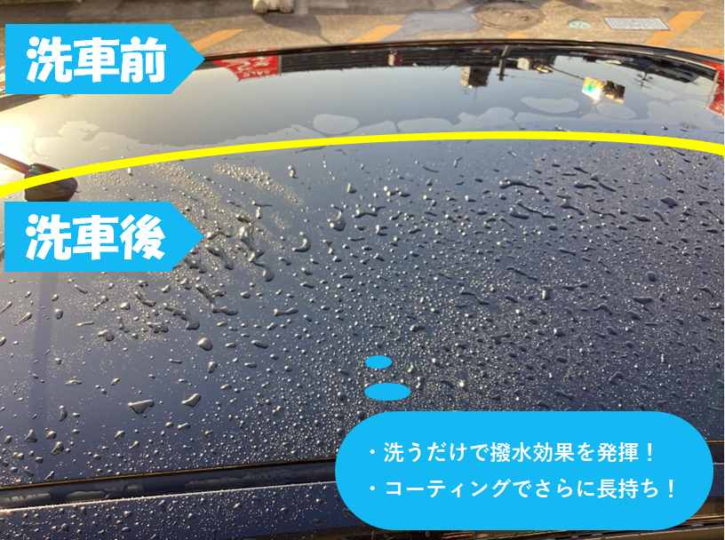 *ボディーに水をかけてホコリ等を洗い流した後、シャンプーを使用して洗うだけで画像のような撥水効果が得られます!