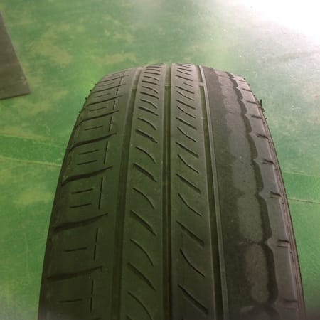今回の写真では、タイヤの片側(写真右側)が大きくすり減っているのがわかると思います。