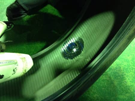 当店のパンク修理作業は2種類ございます、まず、外から穴を塞ぐ外面修理とタイヤの中