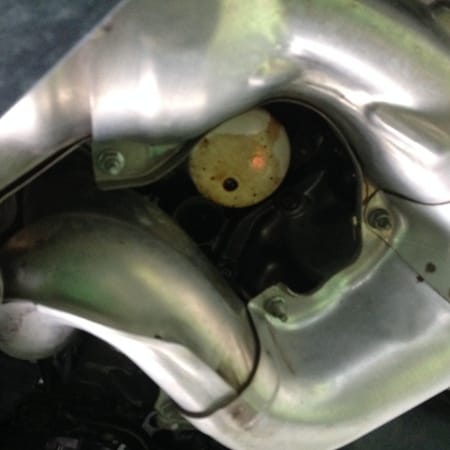 これは前回交換したショップさんで交換後に綺麗にしていない。もしくは締め付けがゆるくオイルが漏れていた、かのどちらかですね。