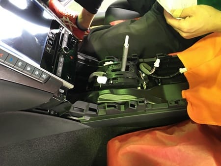 今回はシフトノブのまわり辺りからナビへ向かって外していきます。