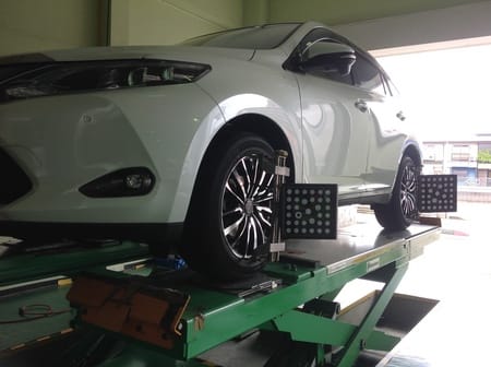 本日はトヨタのハリアーのアライメントを調整致しました。