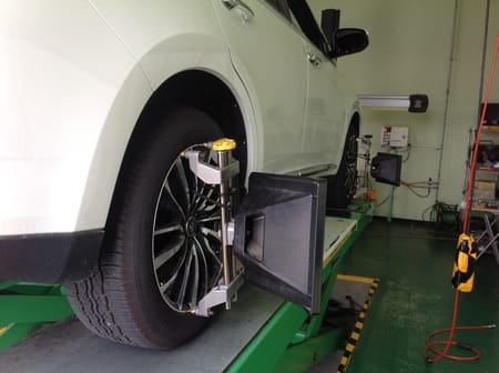 アライメント調整とは、クルマに対するタイヤの取付角度を調整することです。
