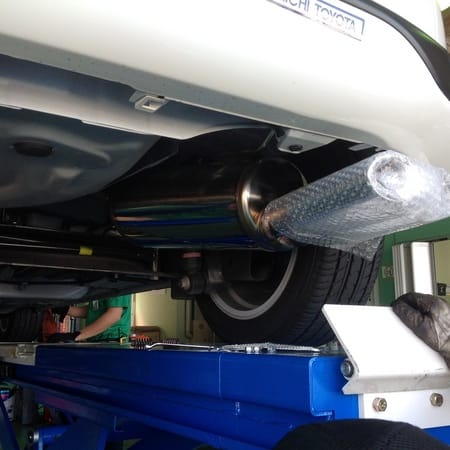 交換が終了したら、エンジンをかけ少しアクセルを踏み、排気の漏れがないかなどを確認。