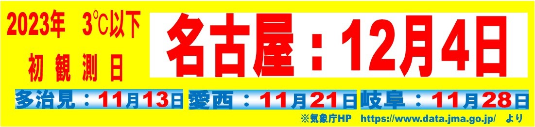 昨年の3℃以下初観測は12月4日(名古屋) 11月13日(多治見)