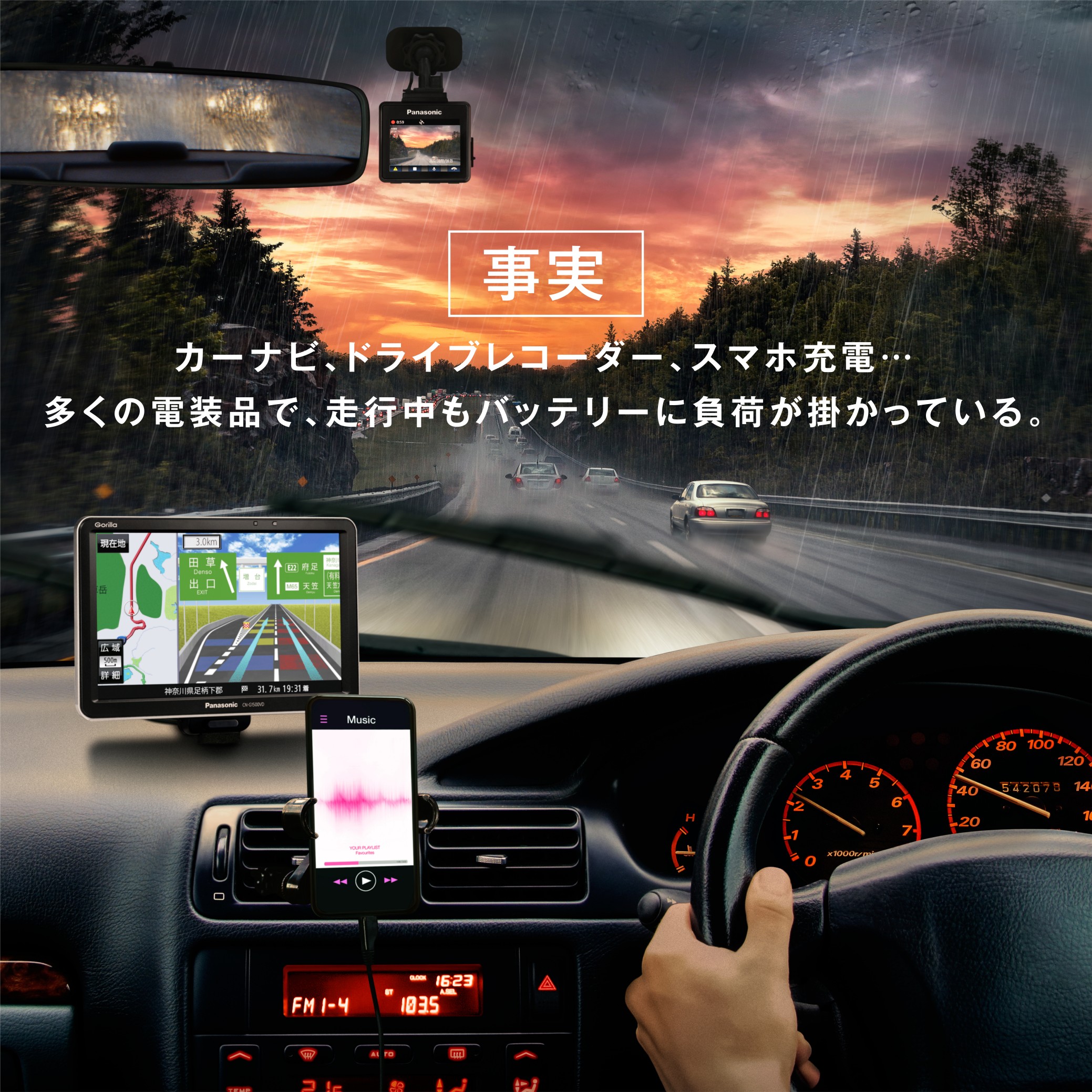 「caos」は駐車中のドライブレコーダーの使用やチョイ乗りなど、多くの電力を消費した状態からパワフルに充電回復できるVチャージにより、充電不足に陥りにくくなります。
