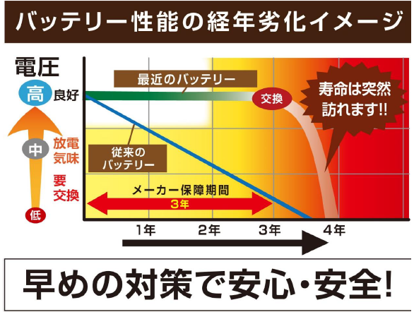 ※ 国内製造カーバッテリーの同一性能ランク(カーバッテリーの始動性能や容量等の総合性能を表す)表示の公表値において。2021年12月1日現在、Q4シリーズ・J8シリーズにおけるパナソニック社調べ。