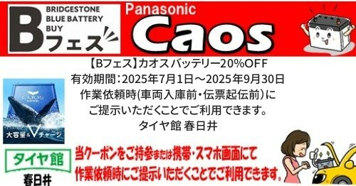 Panasonic caosバッテリーキャンペーン今月いっぱいです!!