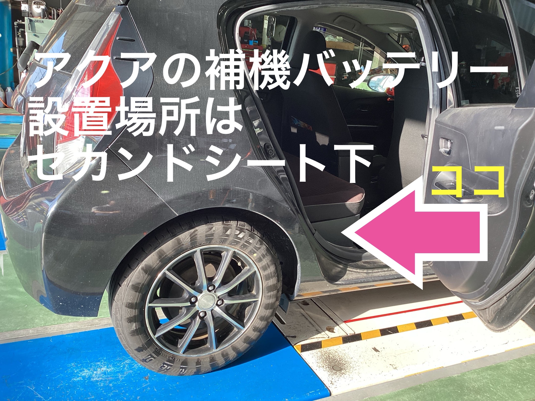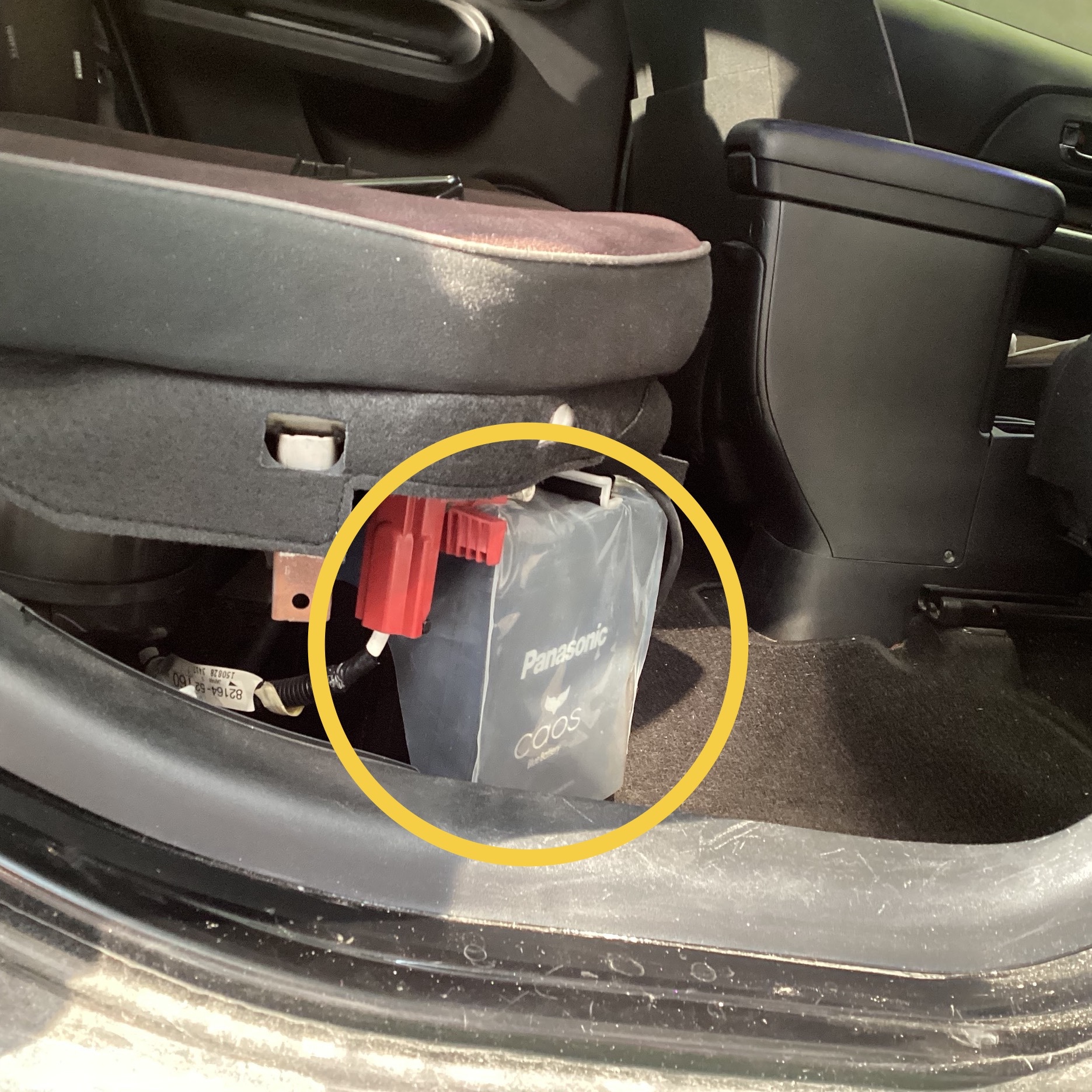アクアの場合、補機バッテリーは、セカンドシートの下に設置されてます。